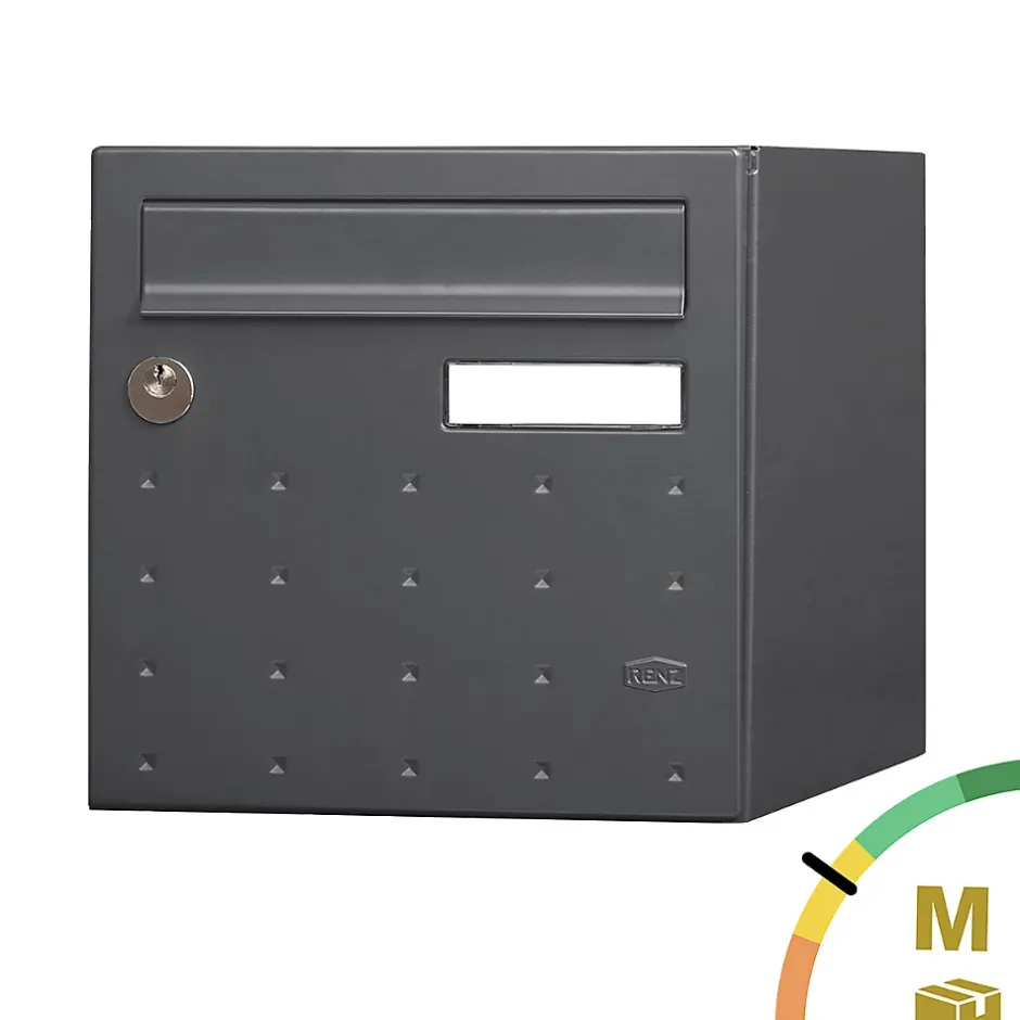 Produit sur-mesure : ce produit spécial est fabriqué à la commande. Boite aux lettres normalisée 1 porte Renz CubYsm avec décor. Permet de recevoir jusqu’à 45% des colis du e-commerce. Boitier avec gouttière hydrofuge permettant de maintenir le courrier au sec. Porte recouvrante équipée d’un volet acier avec atténuation de bruit pour un meilleur confort acoustique et d’un porte-nom affleurant en polycarbonate. Serrure normalisée avec 2 clés. Plancher ergonomique pour un retrait facile du courrier. Peinture poudre polyester sans plomb. Garantie anti-corrosion de 15 ans. Anti-vandale grade 3, résistant jusqu’à 60 kg d’arrachement. Certifiée loi handicap. Dimensions : 285x285x385mmLa boite aux lettres CubYsm bénéficie d’un design moderne en pointe de diamant. Pour protéger efficacement votre courrier contre les intempéries, elle dispose d’une gouttière hydrofuge et d’une porte recouvrante avec un volet. Ce dernier est amorti pour un meilleur confort acoustique à son ouverture et à sa fermeture. CubYsm est normalisée est permet de réceptionner votre courrier et des petits & moyens colis. De plus, son plancher ergonomique facilite le retrait du courrier.Photos non contractuelles, se référer au RAL pour le coloris.