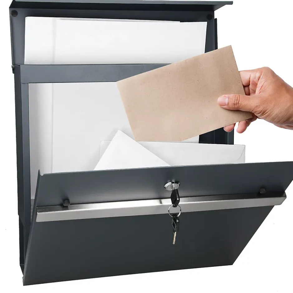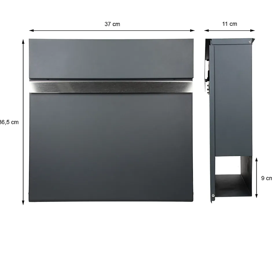 Description du produit :Ces boîtes aux lettres d’ECD Germany en acier robuste et thermolaqué convainquent par leur design moderne et protègent efficacement votre courrier contre l’humidité et la saleté.La grande boîte aux lettres, que vous pouvez verrouiller en toute sécurité avec les deux clés fournies, est particulièrement pratique. D’autres avantages sont le rouleau de journaux intégré et l’ouverture généreuse pour l’insertion des journaux.Propriétés :Boîte aux lettres en acier thermolaqué avec tube à journauxGrande mise à dispositionMontage simpleSerrure à cylindre comprenant 2 clés pour la sécurité de votre courrierY compris le matériel de montageÉtendue de la prestation :1 x boîte aux lettres en acier thermolaqué2 x cléMatériel de montage inclus