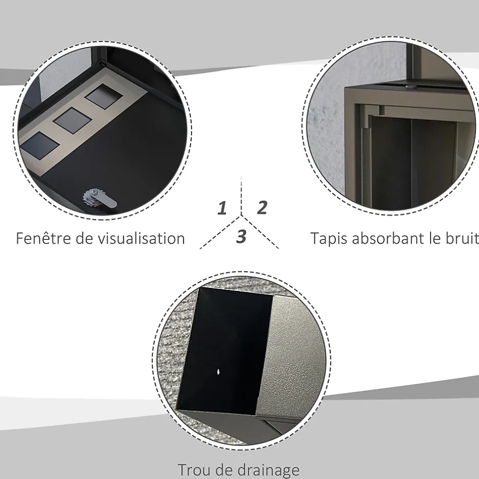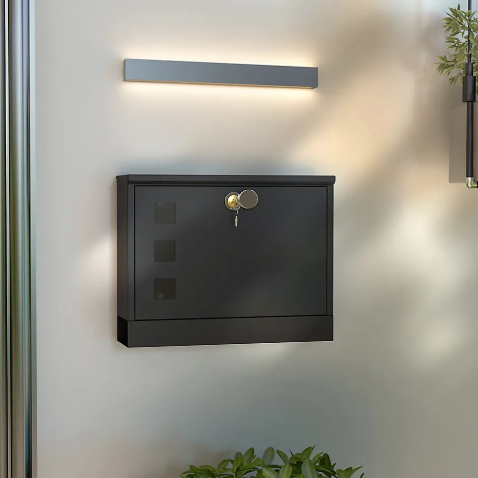 Recevez votre courrier en sécurité et avec élégance grâce à cette boîte aux lettres murale HOMCOM. Fabriquée en métal robuste, elle est parfaite pour une utilisation extérieure. Dotée d’une fente de 35 cm, elle facilite le dépôt des lettres. Son design verrouillable assure la sécurité de votre courrier.Caractéristiques :- Grand espace de rangement intérieur, la boîte aux lettres normalisée dispose d’une fente de 35 cm de long pour faciliter le dépôt du courrier- Boîte aux lettres à la poste avec trois fenêtres latérales : permettent de voir l’intérieur depuis l’extérieur- Conception sécurisée avec serrure : deux clés fournies- Tapis absorbant les bruits sur le couvercle pour réduire le bruit à la fermeture- Trous de drainage au fond de la boîte aux lettres moderne : empêchent l’accumulation d’eau- Installation simple avec le matériel inclusSpécifications :- Couleur : noir- Matériau : métal- Dimensions totales : 36,5l x 11,5P x 29H cm- Dimensions internes : 34l x 9P x 23H cm- Dimensions porte : 34l x 1P x 22H cm- Dimensions fente pour courrier : 35L x 2,5l cm- Réf. : B80-015V00BK