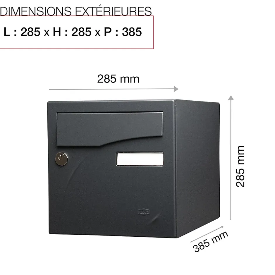 Produit sur-mesure : ce produit spécial est fabriqué à la commande. Boite aux lettres normalisée 1 porte Renz Préface avec décor. Permet de recevoir jusqu’à 45% des colis du e-commerce. Boitier avec gouttière hydrofuge permettant de maintenir le courrier au sec. Porte recouvrante équipée d’un volet acier avec atténuation de bruit pour un meilleur confort acoustique et d’un porte-nom affleurant en polycarbonate. Serrure normalisée avec 2 clés. Plancher ergonomique pour un retrait facile du courrier. Peinture poudre polyester sans plomb. Garantie anti-corrosion de 15 ans. Anti-vandale grade 3, résistant jusqu’à 60 kg d’arrachement. Certifiée loi handicap. Dimensions : 285x285x385mmLa boite aux lettres Préface se distingue par son décor « grain de café » et embellira votre extérieur. En plus de son design, elle offre une protection efficace contre la pluie grâce à une gouttière hydrofuge et à sa porte recouvrante dotée d’un volet en acier. Ce dernier est amorti ce qui garantit un meilleur confort acoustique. Normalisée, Préface permet de recevoir votre courrier et de petits & moyens colis, directement chez vous. Son plancher ergonomique permet un retrait facile du courrier.Photos non contractuelles, se référer au RAL pour le coloris.