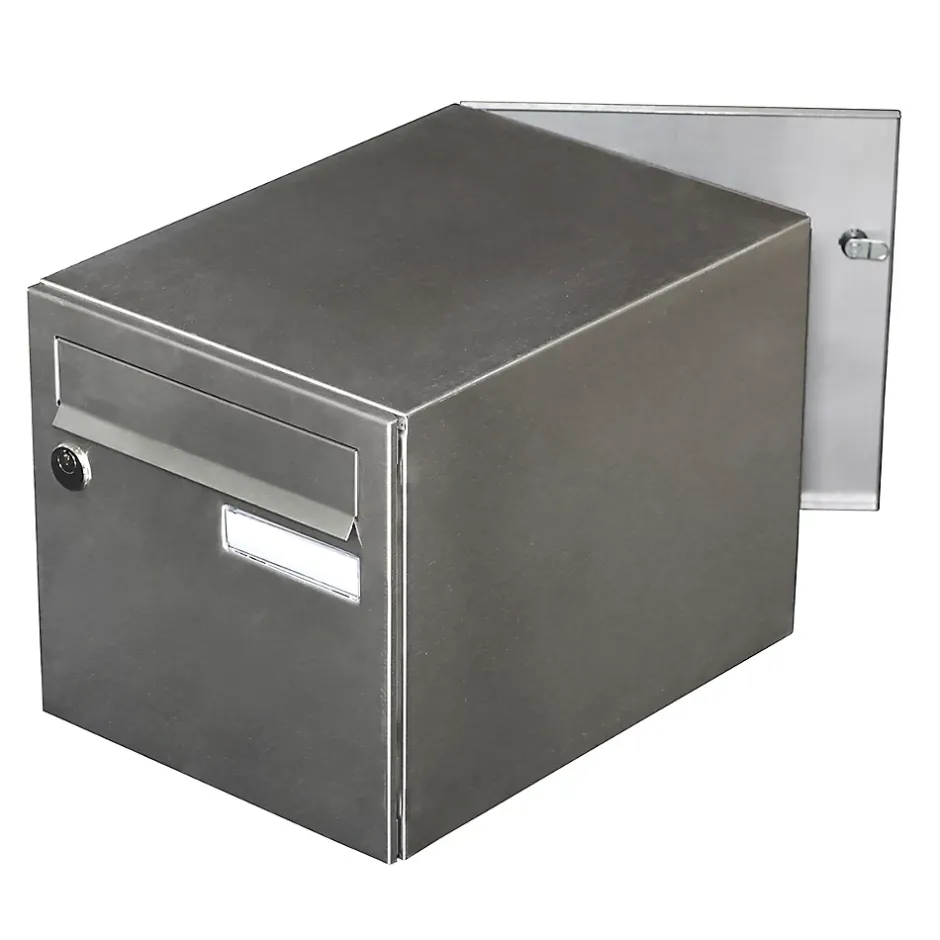 Boite aux lettres normalisée 2 portes Renz Rivage en inox brossé. Permet de recevoir jusqu’à 45% des colis du e-commerce. Boitier avec gouttière hydrofuge permettant de maintenir le courrier au sec. Volet en inox brossé 304L. Serrure normalisée avec 2 clés. Porte arrière avec serrure 2 clés. Plancher ergonomique pour un retrait facile du courrier. Peinture poudre polyester sans plomb. Garantie anti-corrosion de 15 ans. Anti-vandale grade 3, résistant jusqu’à 60 kg d’arrachement. Certifiée loi handicap. Dimensions : 285x285x400mmEntièrement fabriquée en inox brossé, la boite aux lettres Rivage bénéficie d’un design unique et percutant. Grâce à sa gouttière hydrofuge et sa porte recouvrante, Rivage offre une protection efficace contre les intempéries. Normalisée, Rivage 1 porte permet de recevoir votre courrier et de petits & moyens colis, directement chez vous. Son plancher ergonomique permet un retrait facile du courrier. Le modèle 2 portes possède une ouverture à l’avant ainsi qu’à l’arrière. Cela permet de récupérer son courrier et ses colis depuis l’intérieur de sa résidence, si la boite est encastrée dans un mur par exemple.Photos non contractuelles, se référer au RAL pour le coloris.
