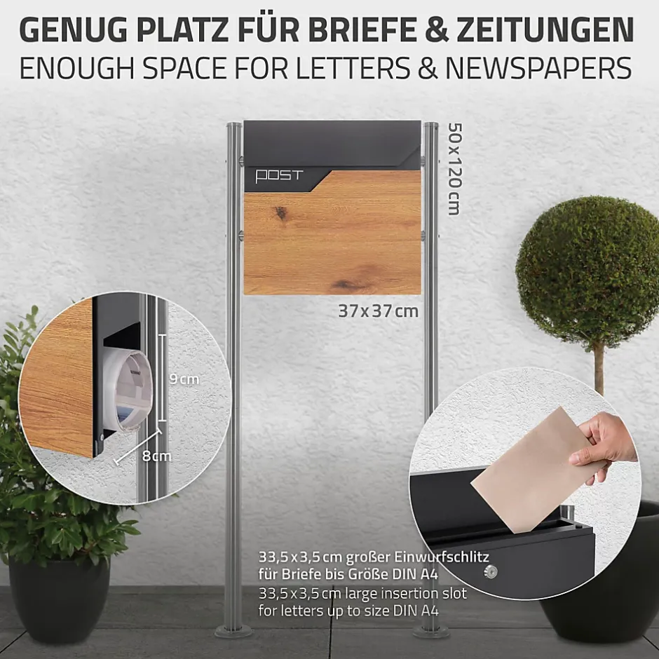 Description du produit :Boîte aux lettresCes boîtes aux lettres de ML-Design en acier inoxydable robuste et revêtu par poudre convainquent par leur design moderne et protègent ton courrier de manière fiable contre l’humidité et la saleté. Le revêtement de haute qualité est particulièrement durable et facile à entretenir et te garantit une utilisation sans problème.Le grand casier à courrier, que tu peux fermer en toute sécurité à l’aide des deux clés fournies, est particulièrement pratique. D’autres avantages sont le rouleau à journaux intégré ainsi que la grande ouverture d’introduction.SupportLe support de boîte aux lettres de ML-Design est beau, moderne et adapté à ta boîte aux lettres. Il est livré avec 6 ancrages au sol adaptés pour fixer rapidement et facilement le support de boîte aux lettres dans le sol. Le support de boîte aux lettres est fabriqué à partir de matériaux de haute qualité et est bien fini, ce qui lui confère une grande longévité. L’acier inoxydable revêtu par poudre assure la résistance du support de boîte aux lettres aux intempéries. Tu peux facilement combiner le support de boîte aux lettres avec la boîte aux lettres de ton choix.Le support de boîte aux lettres en acier inoxydable est un bel ajout à ton terrain. Un autre avantage du support de boîte aux lettres est que tu n’es pas obligé de fixer la boîte aux lettres directement à ta maison. Tu peux aisément installer le support de boîte aux lettres dans le sol et y fixer la boîte aux lettres sans avoir à faire de trous dans la façade de la maison.Tu trouveras aussi bien des supports de boîtes aux lettres que des boîtes aux lettres traditionnelles et adaptées dans notre boutique en ligne à un prix avantageux.Contenu de la livraison :1 x support de boîte aux lettres, y compris 6 ancrages au solmatériel de montage et instructions de montage inclus1 x boîte aux lettres1 x kit d’accessoires (y compris 2 clés, entretoise, matériel de montage)