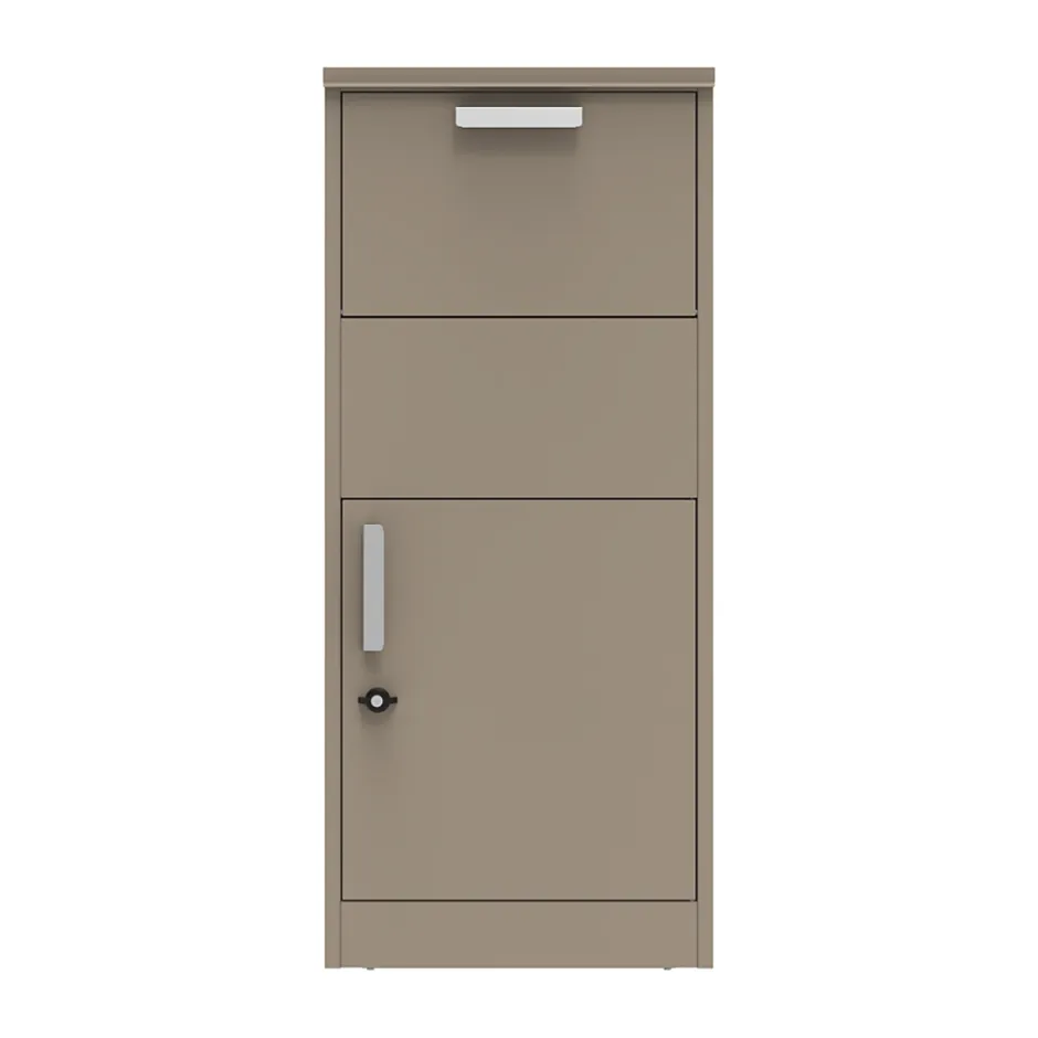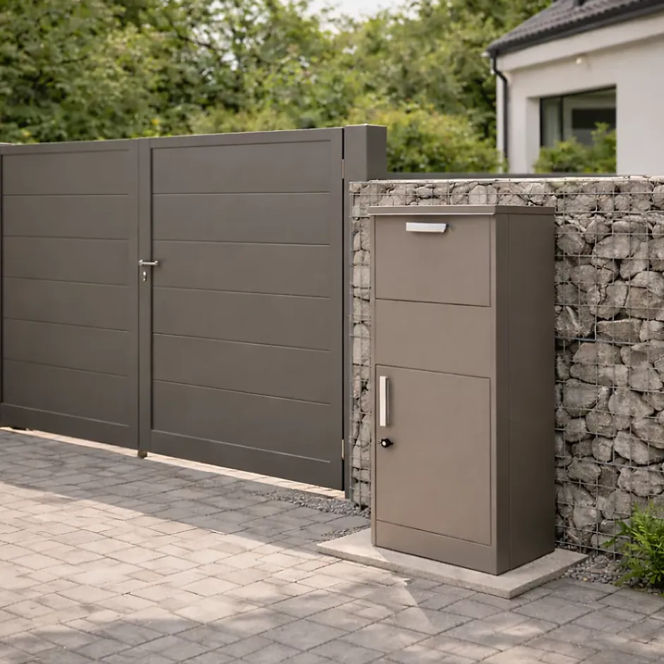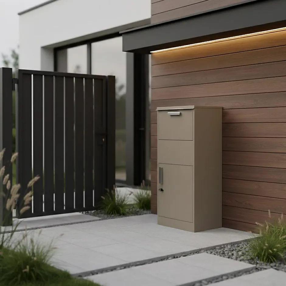 Une boîte aux lettres taupe élégante et résistante, pensée pour recevoir courrier et petits colis en toute simplicité. Son design contemporain et son compartiment colis intégré facilitent vos livraisons au quotidien.