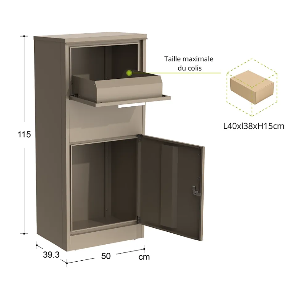 Cette boîte aux lettres en acier galvanisé taupe offre une solution élégante et fonctionnelle pour recevoir votre courrier et vos petits colis. Sa teinte chaleureuse s’adapte aisément à toutes les façades, qu’elles soient modernes ou plus traditionnelles. Grâce à son compartiment spécialement dédié aux paquets, vous pouvez récupérer vos livraisons en toute autonomie.Conçue en acier galvanisé et protégée par une peinture époxy, elle bénéficie d’une excellente durabilité. Le compartiment courrier est séparé du compartiment colis, permettant une organisation simple et efficace. Les panneaux renforcés de 0,8 mm assurent une rigidité optimale.Livrée avec une serrure papillon et deux clés, ainsi qu’une poignée ergonomique, elle est prête à être installée grâce à toute la visserie fournie. Dimensions : L50xl39,3xh115cm. A monter soi-même.