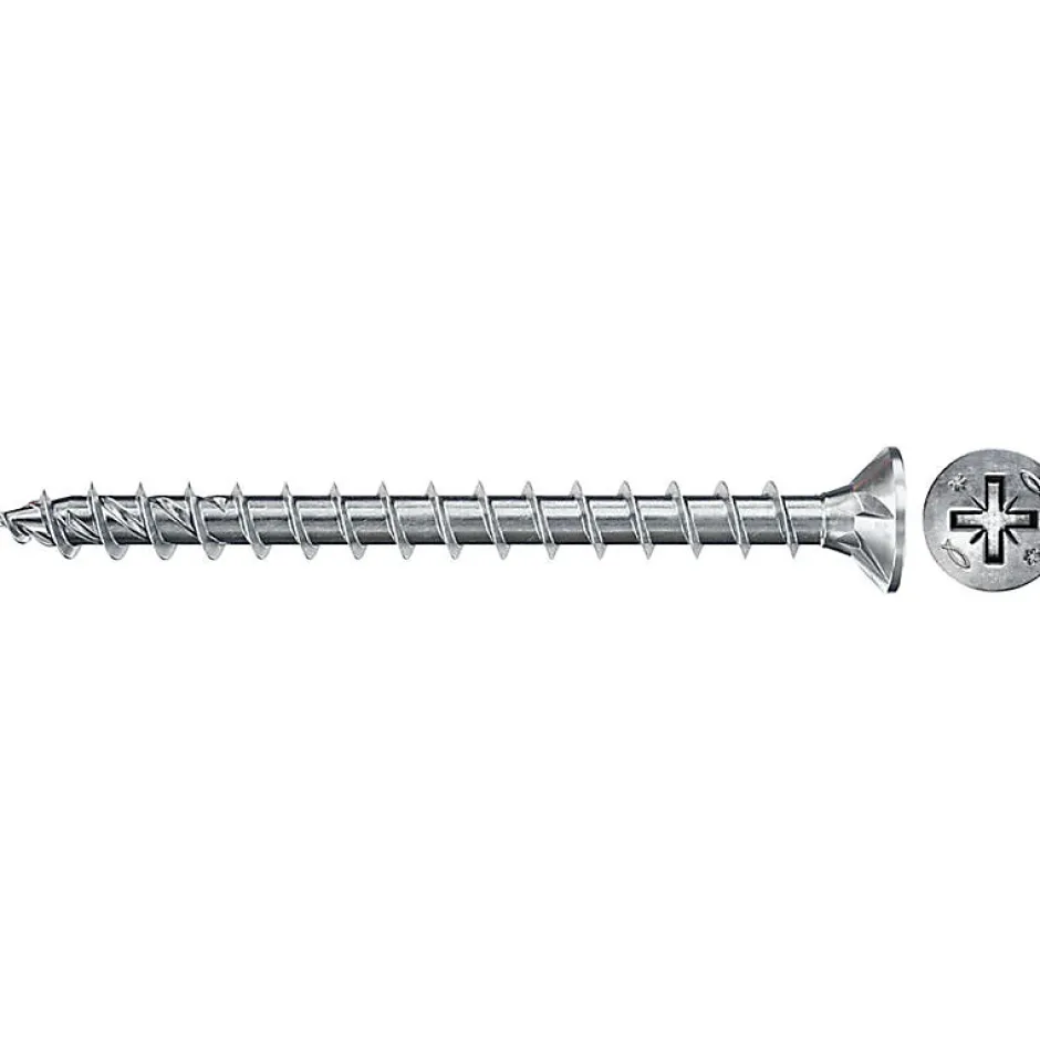 La fischer Power-Fast II FPF II CZF BC est une vis galvanisée galvanisée passivée avec filetage complet et entraînement à fente croisée PZ. La tête fraisée permet un montage en surface dans le bois. Le filetage continu sur toute la longueur de la vis assure une transmission optimale de la puissance. La vis est idéale pour la fixation sur des raccords en bois, des raccords, des supports de socle et des garnitures de porte et de métal.Pour les connexions de pièces métalliques sur le bois, par exemple garnitures métalliques, équerres, patins à barres et autres composés métalliques et en bois pour les applications avec des charges contrôlées dans les chevilles fischer. La géométrie des vis de la Power-Fast II garantit une vitesse de montage confortable et flexible La pointe de la vis avec les trois nervures garantit un serrage et un préfraisage rapides Caractéristiques techniques de la Boîte de 500 vis à bois FISCHER Power-Fast FPF II CZF – 5 x 40 mm :Contenu : 500 pc(s) Dim. (Ø x L) : 5 mm x 40 mm Diamètre : 5 mm Longueur 40 mm Entraînement : cruciforme Pozidriv Matériau : acier Propriété du matériau : étamé par galvanisation Forme de la tête : tête fraisée Type de produit : vis agglo