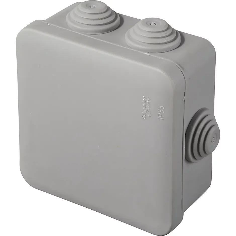 Boîte de dérivation carrée extérieure avec 7 passe-câbles et système de verrouillage 80 x 80 x 45 mm Schneider Electric Mureva Box gris