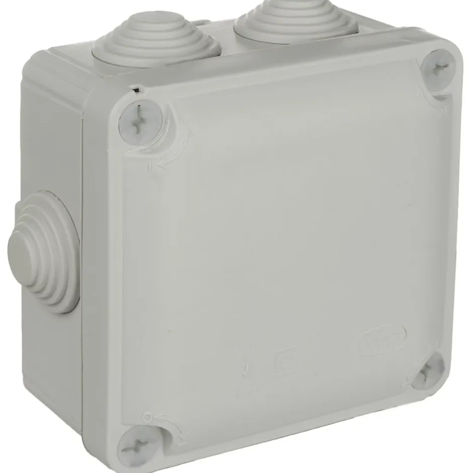 Boîte étanche Ybox de connexion 100 x 100 x 55 mm avec 7 cônes. Couleur gris. Marque N (Aenor). Protection IP55, IK08. Fermeture à vis 1/4 de tour. Avec 7 cônes pour tube Ø 25 mm. Forme : carrée. Garantie 2 ans.