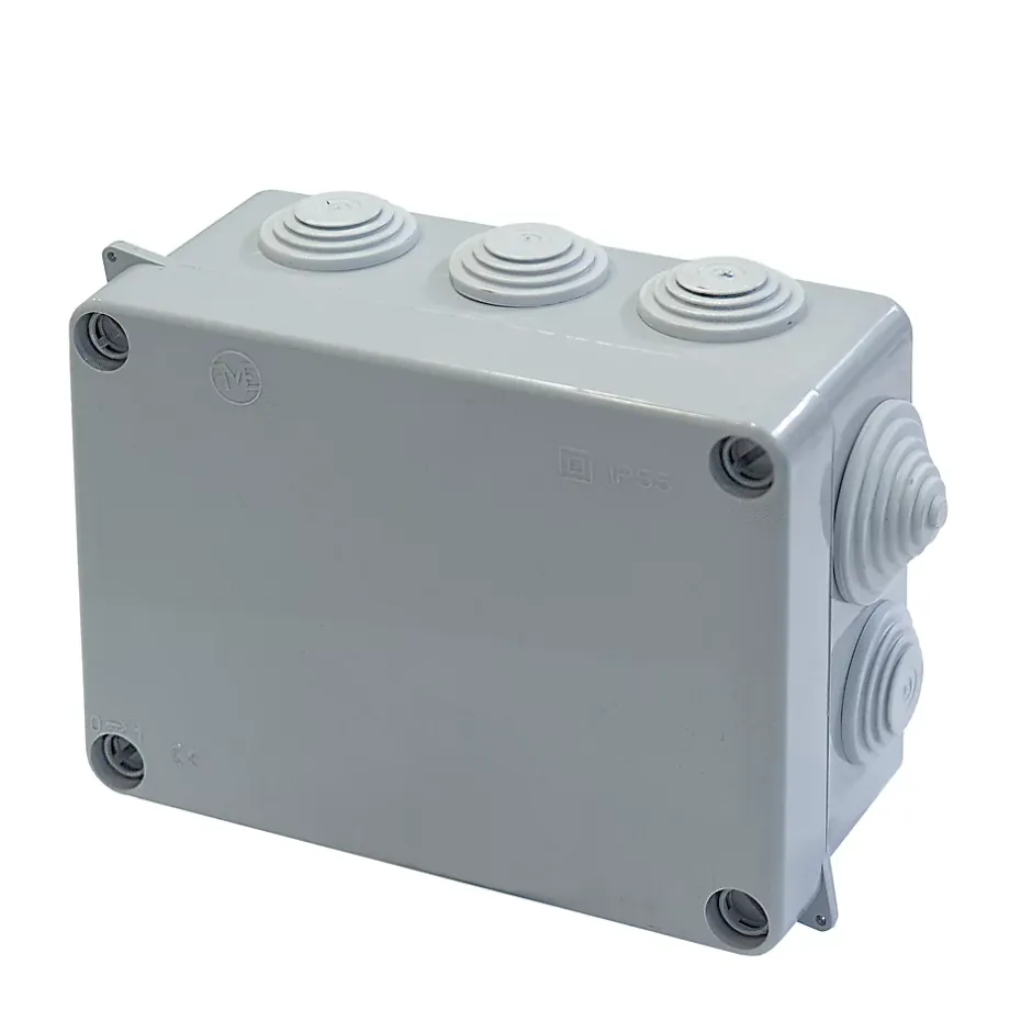 Boîte de dérivation extérieure avec 10 passe-câbles + vis et système de verrouillage intégré.