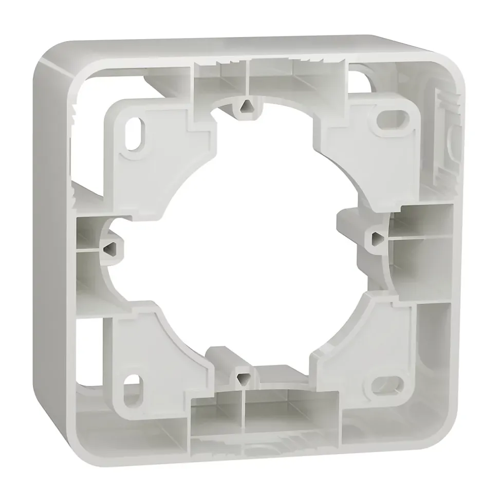 Boîte d’encastrement 1 poste pour un montage en saillie. Gamme Unica Deco, couleur blanc.