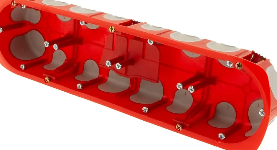 - Boîte d’encastrement étanche à l’air et multi matériaux (cloisons sèches et murs pleins), développée pour permettre une parfaite compatibilité avec les appareillages ainsi qu’une étanchéité optimale au niveau de la collerette et les entrées des conduits