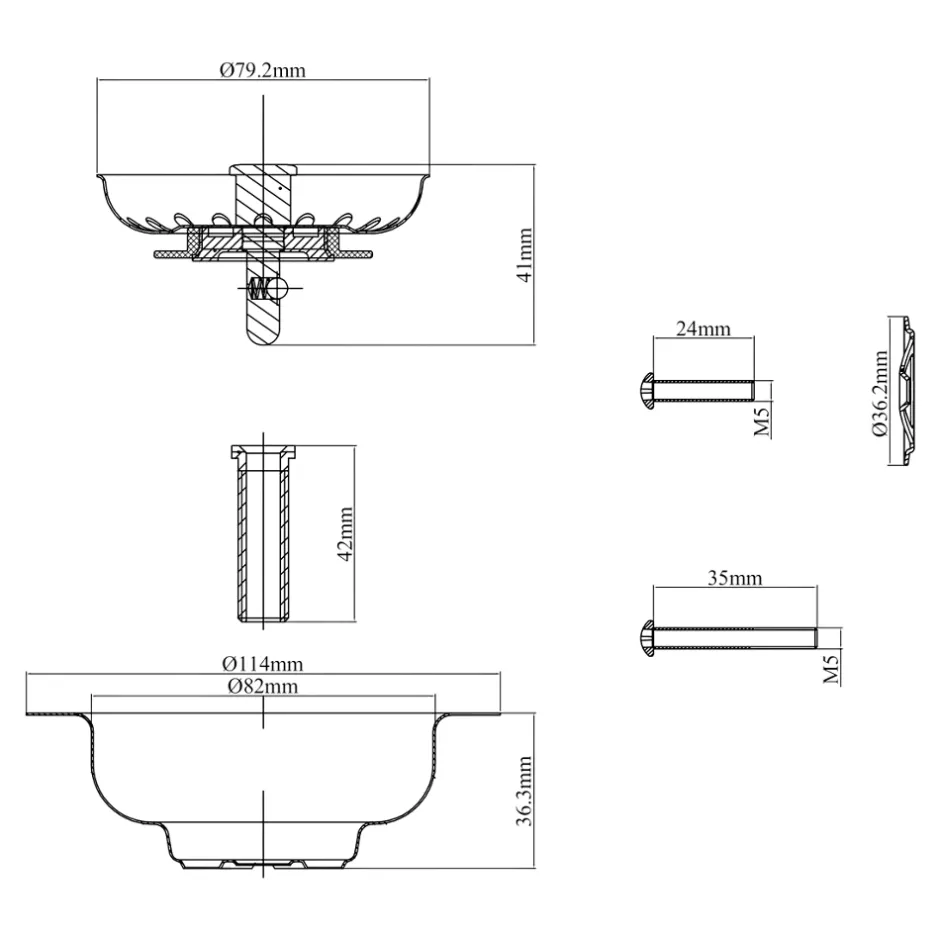 Bonde à panier doré pour évier 80 mm Waste Basket