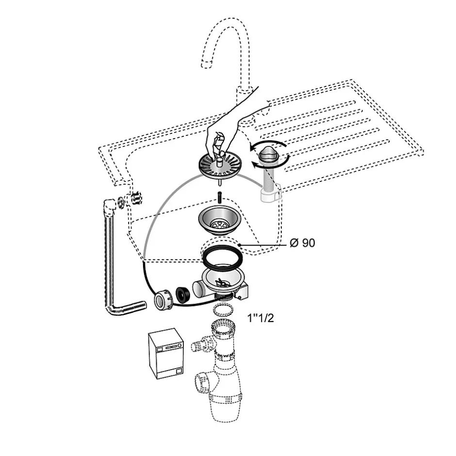 Bonde à panier pour évier 90mm avec commande à câble Wirquin