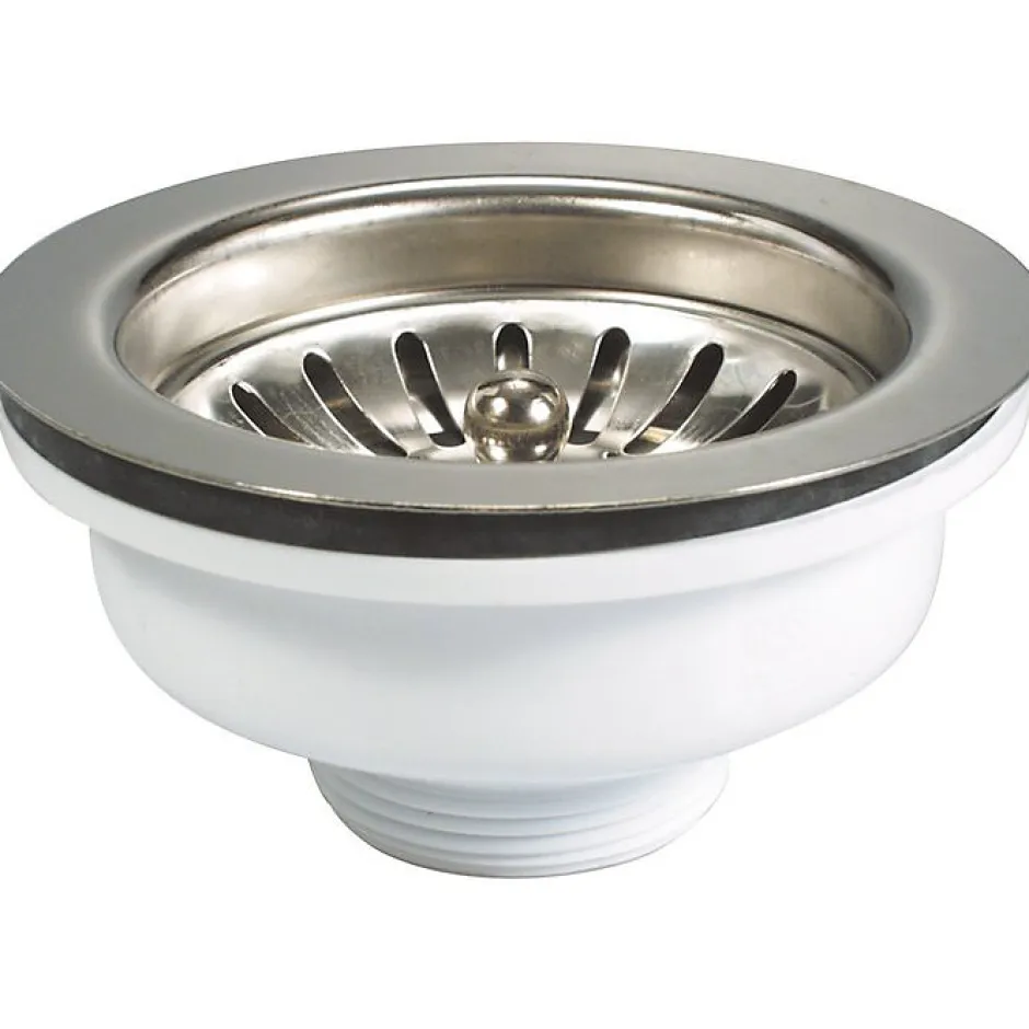 Pour évier grès ou en matériau composite Grille et plateau finition inox Perçage : Ø 90 mm Plateau : Ø 114 mm