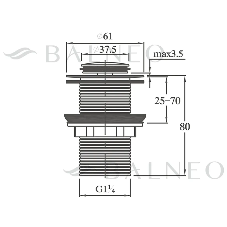 Données techniques: Utilisation : pour lavabos sans trop-plein Type : Sans trop-plein Trop-plein : Non Matériau : Laiton Disponible en : Chrome, or, noir Forme : Ronde Soupape d’ouverture : Oui Ajustement horizontal : Non Diamètre du filetage : G1 1/4 Ce produit est-il universel (pour tout type de lavabo) ? Oui, universel pour les lavabos sans trop-plein.Avantages : 100% de résistance à la corrosion grâce à la conception en laiton ouverture et fermeture faciles utilisation de joints en silicone, plus durables convient à de nombreux types de lavabos utilisation de 4 joints, dont un joint de guidage facile à nettoyer fabriqué à partir de matériaux durables et résistants pas de risque d’obstruction de l’évacuation ; la conception empêche les grosses pièces de pénétrer dans le tuyau d’évacuation le bouchon est également doté d’un joint en plomb dur supplémentaire, qui répartit uniformément le joint en silicone, garantissant ainsi l’étanchéité du bouchon
