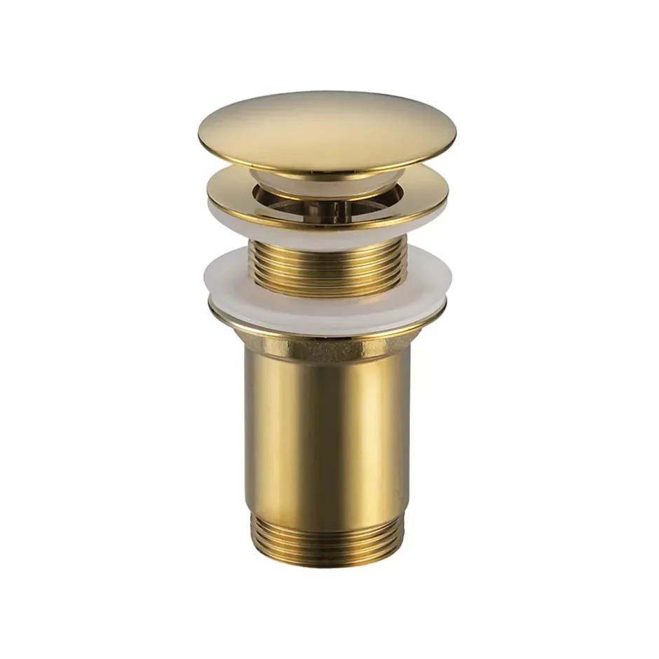 Données techniques: Utilisation : pour lavabos sans trop-plein Type : Sans trop-plein Trop-plein : Non Matériau : Laiton Disponible en : Chrome, or, noir Forme : Ronde Soupape d’ouverture : Oui Ajustement horizontal : Non Diamètre du filetage : G1 1/4 Ce produit est-il universel (pour tout type de lavabo) ? Oui, universel pour les lavabos sans trop-plein.Avantages : 100% de résistance à la corrosion grâce à la conception en laiton ouverture et fermeture faciles utilisation de joints en silicone, plus durables convient à de nombreux types de lavabos utilisation de 4 joints, dont un joint de guidage facile à nettoyer fabriqué à partir de matériaux durables et résistants pas de risque d’obstruction de l’évacuation ; la conception empêche les grosses pièces de pénétrer dans le tuyau d’évacuation le bouchon est également doté d’un joint en plomb dur supplémentaire, qui répartit uniformément le joint en silicone, garantissant ainsi l’étanchéité du bouchon