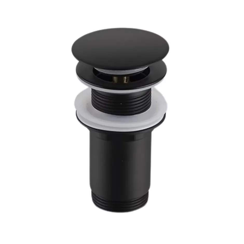 Données techniques: Utilisation : pour lavabos sans trop-plein Type : Sans trop-plein Trop-plein : Non Matériau : Laiton Disponible en : Chrome, or, noir Forme : Ronde Soupape d’ouverture : Oui Ajustement horizontal : Non Diamètre du filetage : G1 1/4 Ce produit est-il universel (pour tout type de lavabo) ? Oui, universel pour les lavabos sans trop-plein.Avantages : 100% de résistance à la corrosion grâce à la conception en laiton ouverture et fermeture faciles utilisation de joints en silicone, plus durables convient à de nombreux types de lavabos utilisation de 4 joints, dont un joint de guidage facile à nettoyer fabriqué à partir de matériaux durables et résistants pas de risque d’obstruction de l’évacuation ; la conception empêche les grosses pièces de pénétrer dans le tuyau d’évacuation le bouchon est également doté d’un joint en plomb dur supplémentaire, qui répartit uniformément le joint en silicone, garantissant ainsi l’étanchéité du bouchon
