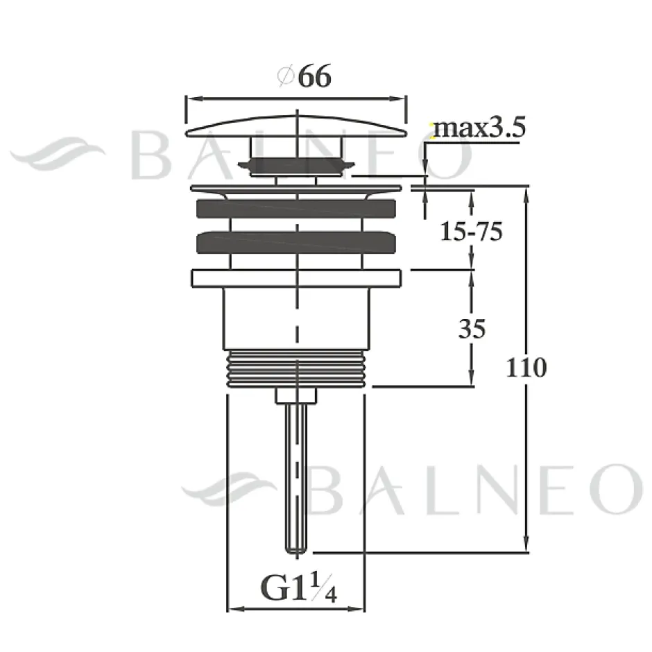 Données techniques : Utilisation : pour lavabos sans trop-plein Type : sans trop-plein Trop-plein : Non Matériau : Laiton Disponible en : Chrome, or, noir Forme : Ronde Soupape d’ouverture : Oui Ajustement horizontal : Non Diamètre du filetage : G1 1/4 S’agit-il d’un produit universel (pour tout type de bassin) ? Oui, universel pour les bassinsAvantages : 100% de résistance à la corrosion grâce à la conception en laiton ouverture et fermeture faciles utilisation de joints en silicone, plus durables convient à de nombreux types de lavabos facile à nettoyer fabriqué à partir de matériaux durables et résistants pas de risque d’obstruction de l’évacuation La conception empêche les objets de grande taille de pénétrer dans le tuyau d’évacuation.