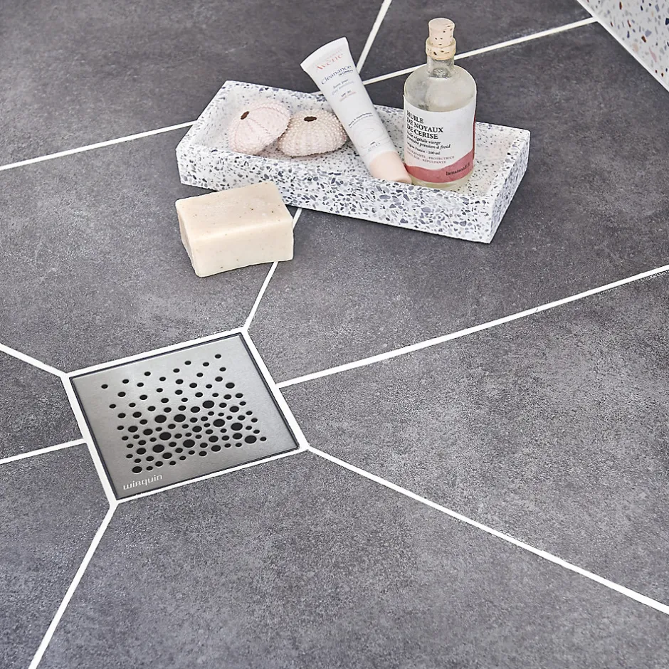- La grille en inox, haute qualité, est ajustable grâce à sa rehausse pour des carreaux jusqu’à 12 mm et apporte design et durabilité à la douche.