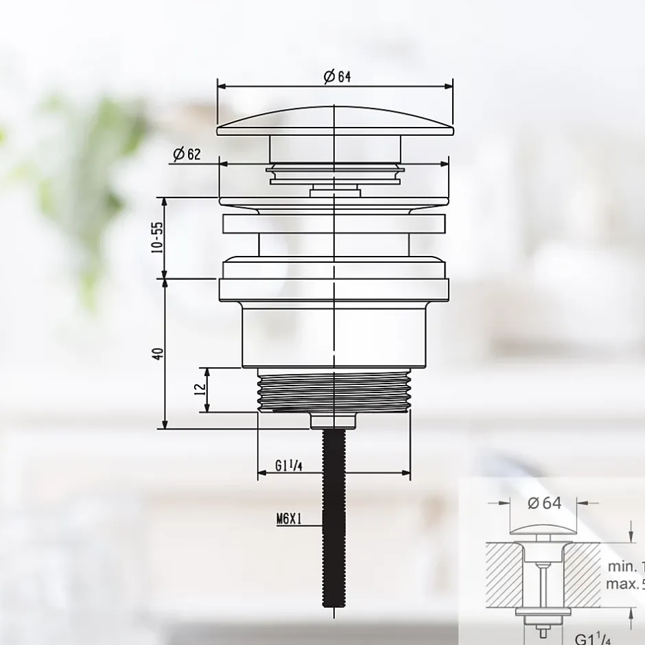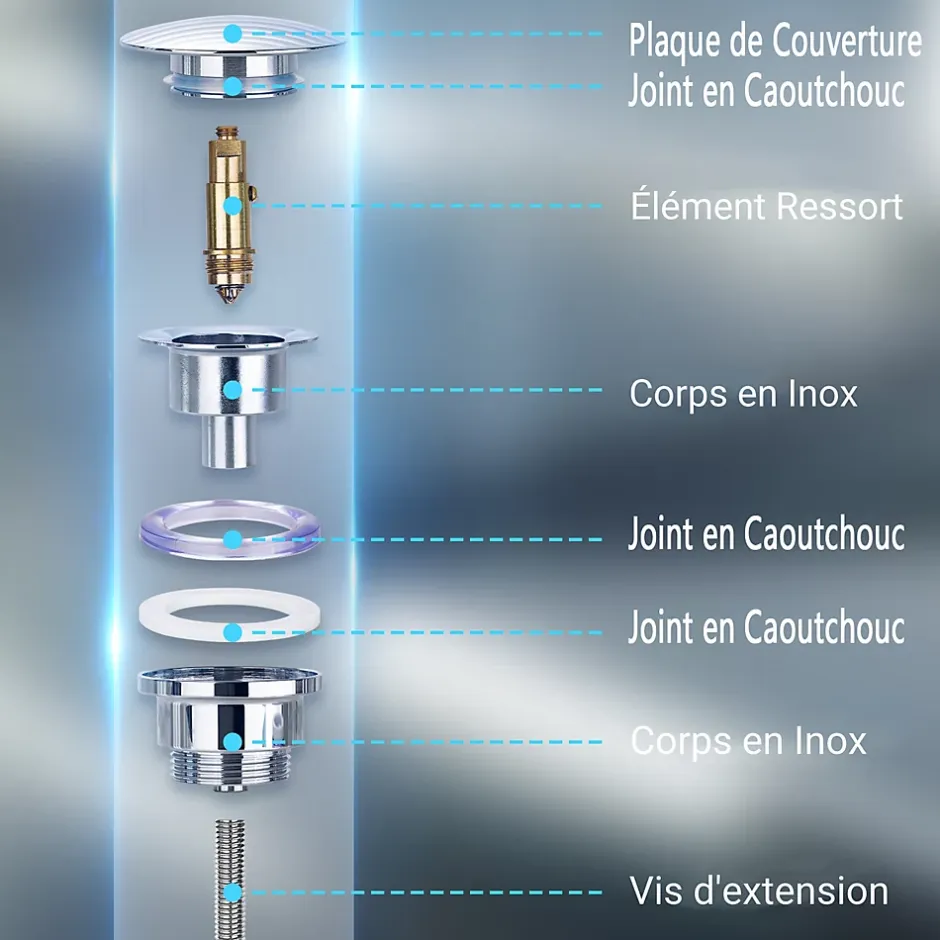 - Adaptabilité universelle : Convient aussi bien aux lavabos avec ou sans trop-plein grâce à sa conception polyvalente et sa compatibilité avec les dimensions standards G 1-1/4″.