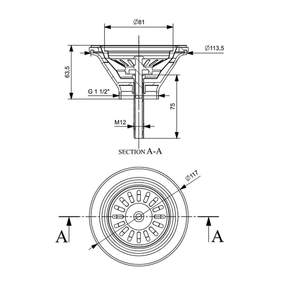 - Diamètre bonde évier 114mm, trou évier 90mm>>