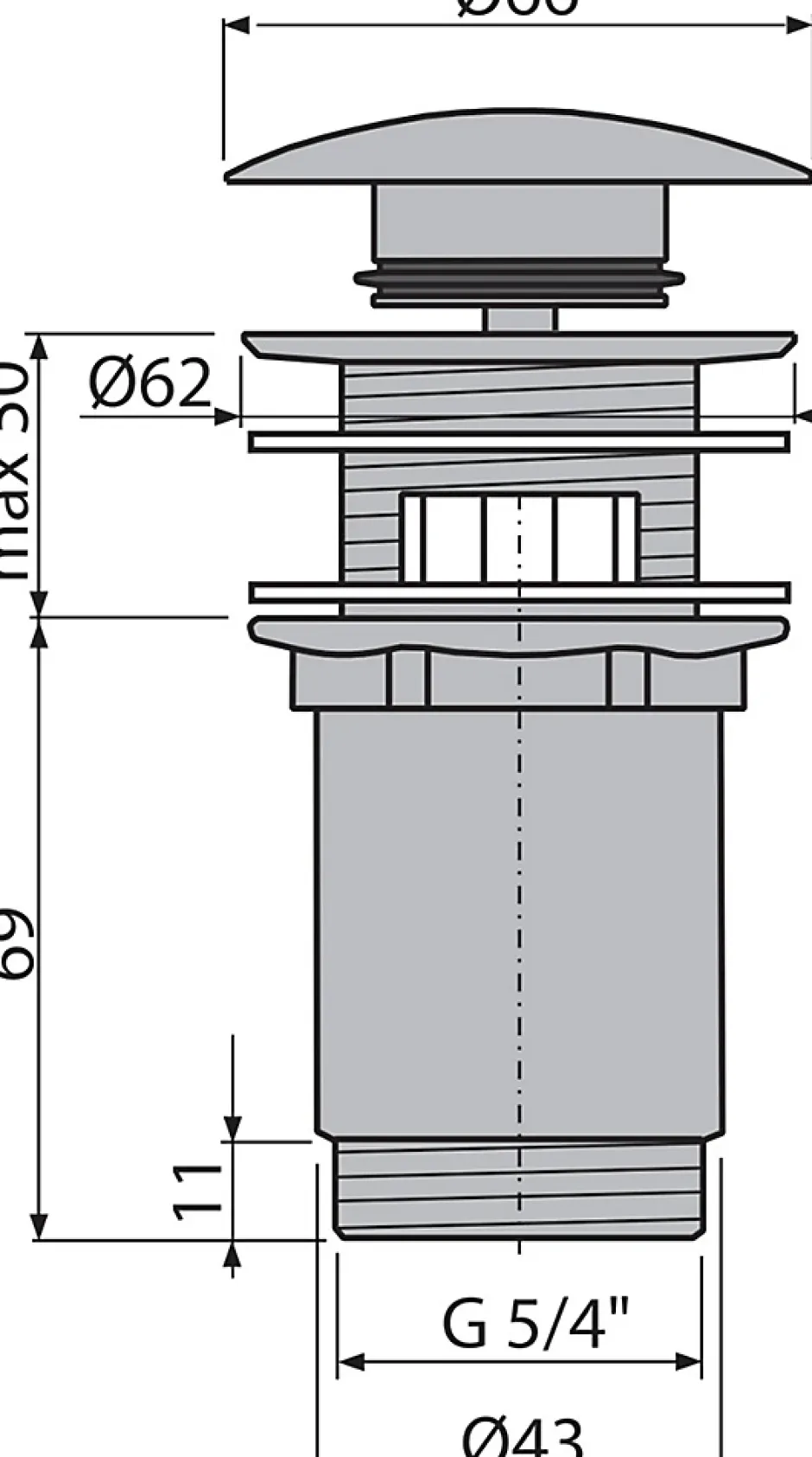 Caractéristiques de la Bonde pour lavabo clic-clac 5/4 » Avec trop-plein, Rose Gold : Filetage pour raccordement au siphon de lavabo 5/4 «