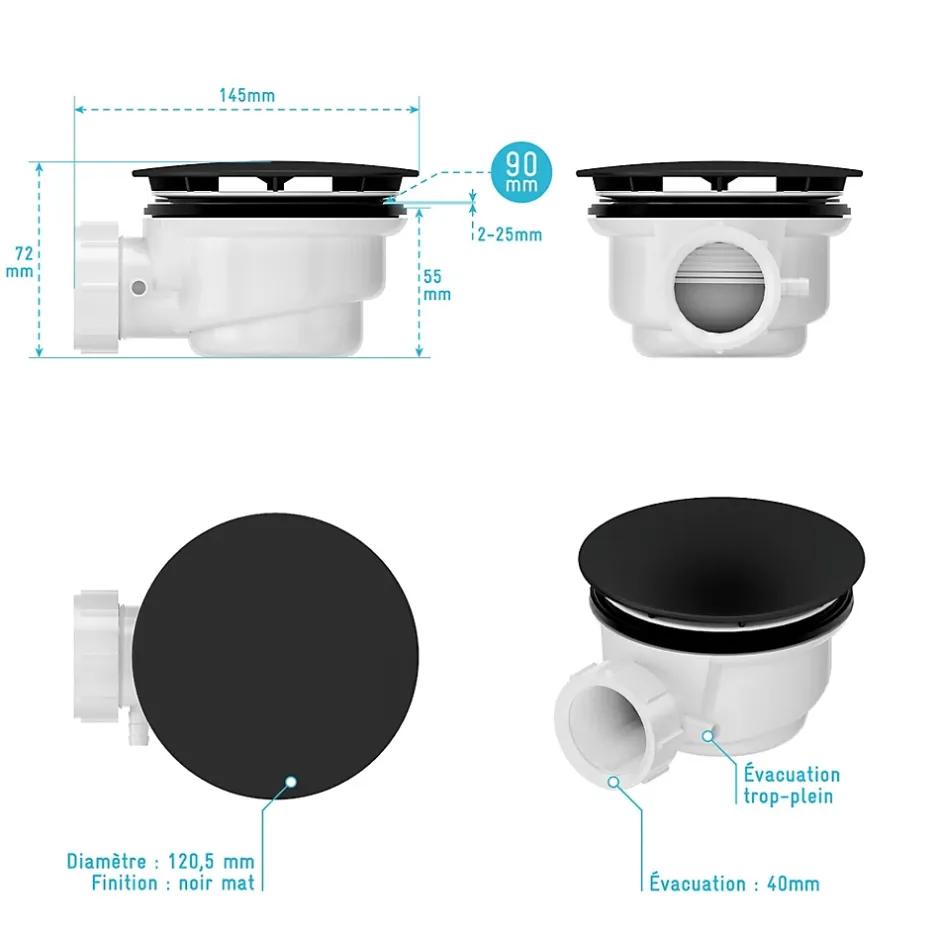 - Diam. de l’évacuation : 40 mm