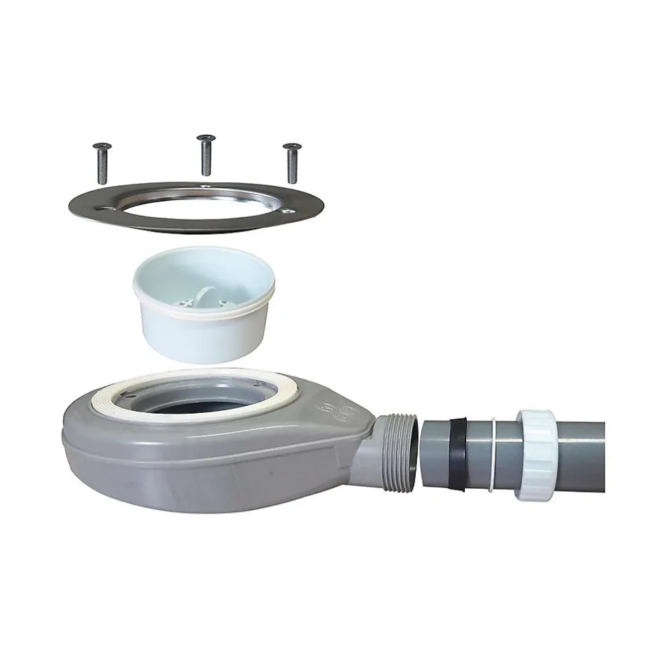 Bonde siphon avec coupelle en acier inoxydable et fixation à 3 visSortie horizontale pour tube de 40Conçu et adaptable pour tout type de receveur de douchePanier à résidus facilement amovible pour le nettoyageInclus joint d’étanchéité