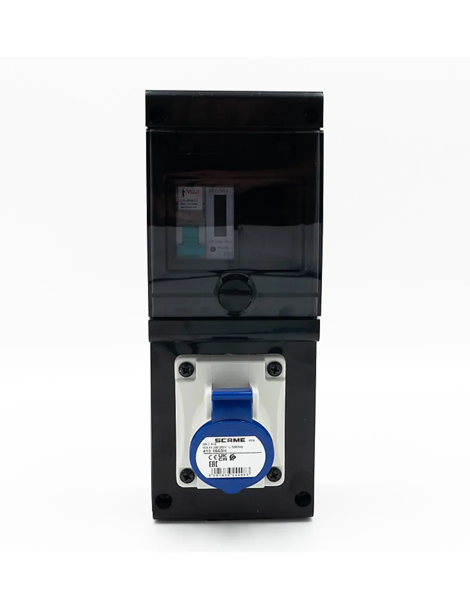 -enveloppe ABS 385x100x100 -IP65 IK 08-4 modules-1 disjoncteur différentiel P/N 20A 30mA Type A- 6kA-C-1 compteur modulaire sans RAZ-1 prise 16A P+N+T avec protections enfants standard Europe IP44-1 bornier de terre-1 presse étoupe PG13.5 non monté+ 1 disjoncteur P/N 20A 4.5kA-C à monter dans le tableau principale pour protéger la ligne dédiéeProtection IMO CorpRaccordement à partir du tableau par une ligne dédiée, avec câble de 3 x 2,5 mm² minimum – Spécialiste des bornes de recharges lentes , 3700W sur prise 16A standard CEI , entièrement équipée et prêt à brancher , compteur pour le calcul des consos. Borne de recharge avec prise Europe 16A complète avec protections : Borne de recharge véhicule électrique, . Borne complète ‘prêt à brancher » pour la recharge de votre véhicule électrique .Equipée d’une prise standard « Europe » 16A avec protections enfants