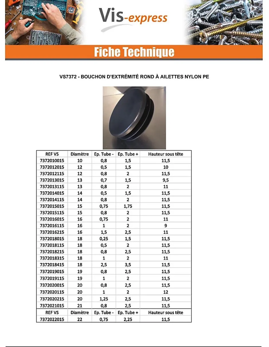 Bouchon rond pour tube Diamètre Extèrieur 52 Intérieur 45-49 nylon noirDiametre = 52, Matiere = NylonAutre références : 3617500631855 3663072491755