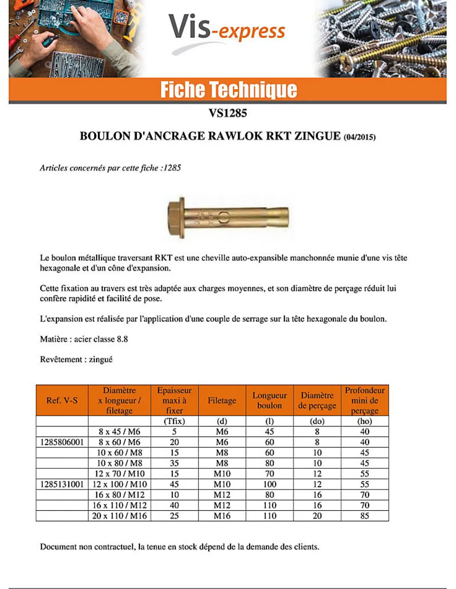 Boulon métal RKT 16X110 M12 Acier zingué Autre références : 3663072505445