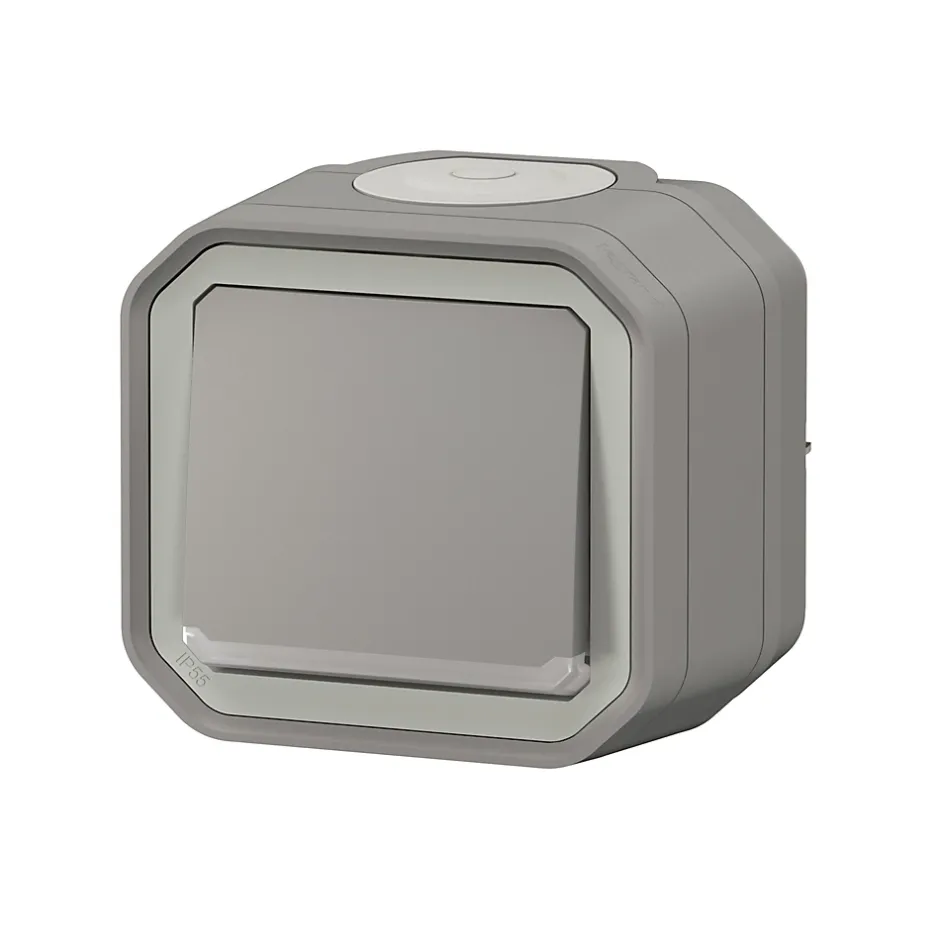 Bouton poussoir lumineux Legrand Plexo gris en saillie