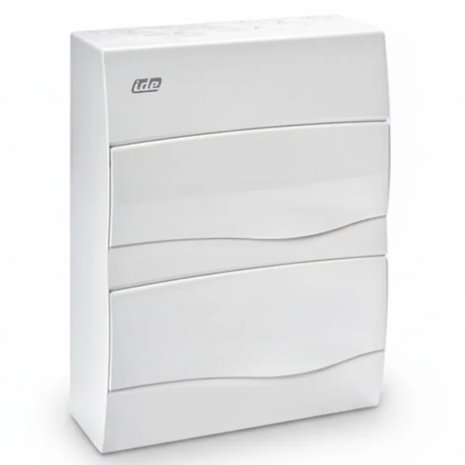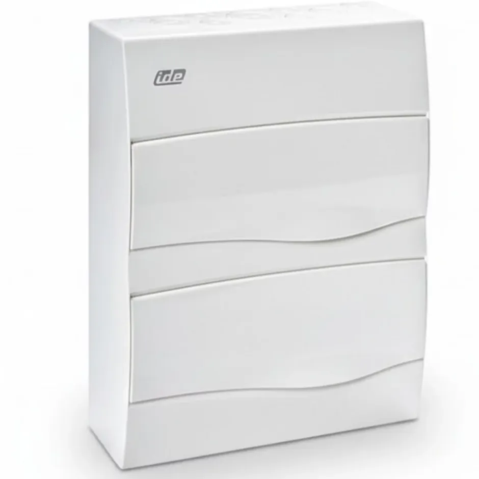 Tableau électrique résidentiel 2×12 modulesCe tableau électrique résidentiel appartient à la gamme Combi fabriquée par IDE.Ce coffret de dimensions (HxLxP) 353x264x99mm peut intégrer 24 modules répartis sur 2 rangées de 12 modules.Ce tableau est protégé par 2 portes pleine sans serrure.Ce coffret plastique isolé est étanche IP40 et résistants aux chocs IK08.Livré avec rail DIN.
