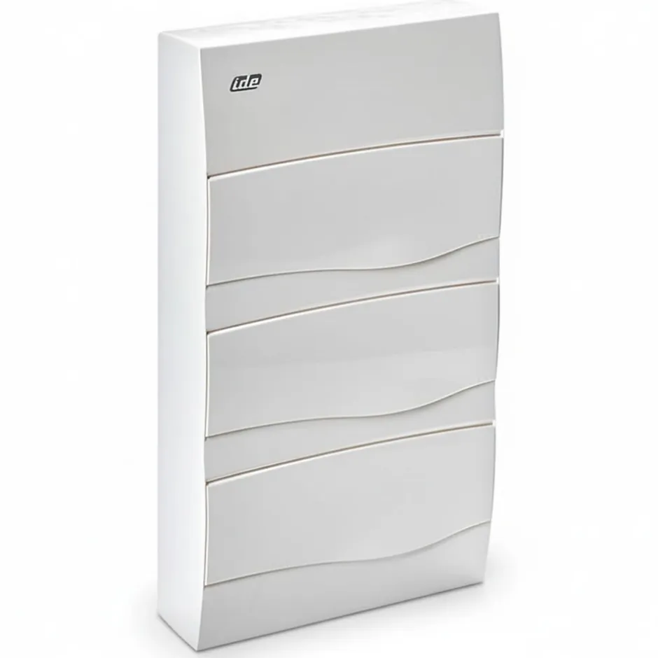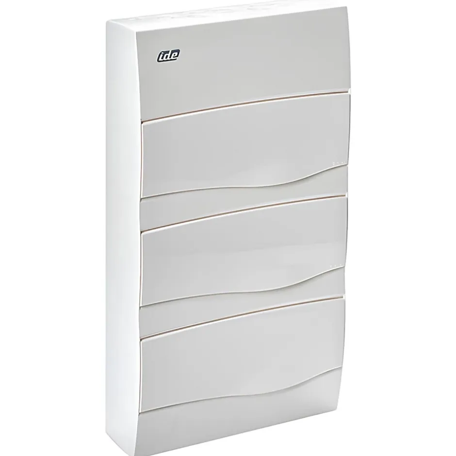 Tableau électrique résidentiel 3×12 modulesCe tableau électrique résidentiel appartient à la gamme Combi fabriquée par IDE. Ce coffret de dimensions (HxLxP) 497x264x99mm peut intégrer 36 modules répartis sur 3 rangées de 12 modules.Ce tableau est protégé par 3 portes pleine sans serrure.Ce coffret plastique isolé est étanche IP40 et résistants aux chocs IK08.Livré avec rail DIN.