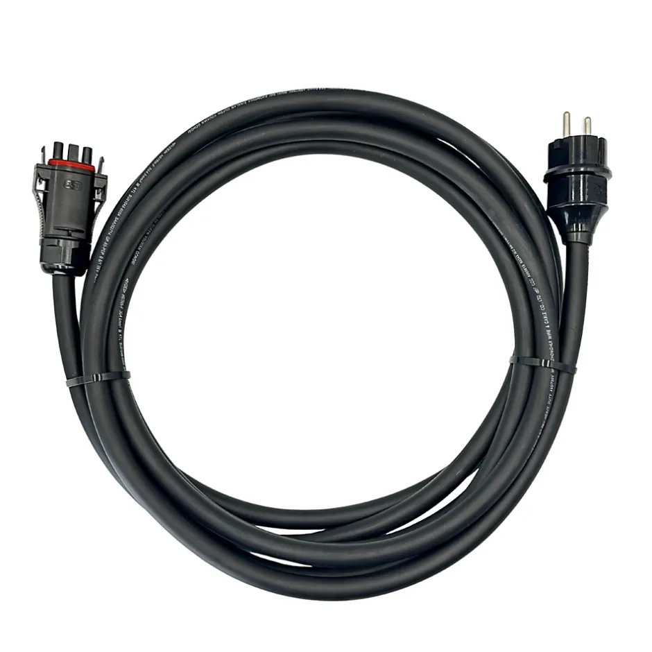 Câble AC 5m 4 mm² – pour micro-onduleur Sossen Le câble de connexion AC Sossen 5 m – section 3×4 mm² est spécialement conçu pour raccorder en toute sécurité un micro-onduleur Sossen à votre installation domestique. Prêt à l’emploi grâce à son connecteur Sossen pré-serti côté micro-onduleur et sa prise Schuko intégrée côté secteur, il assure une installation rapide, simple et sécurisée, sans besoin d’outillage spécifique. Avantages du câble AC Sossen 5 m : Compatibilité totale avec les micro-onduleurs Sossen. Installation rapide grâce au système plug-and-play. Longueur pratique de 5 m offrant une grande flexibilité d’installation. Matériaux robustes : câble en caoutchouc résistant aux UV, intempéries et conditions extérieures. Prise Schuko intégrée et pré-sertie pour une sécurité maximale. Connexion fiable et conforme aux normes industrielles et électriques. Pourquoi choisir ce câble AC Sossen ? Idéal pour connecter un micro-onduleur Sossen à une prise domestique. Conception plug-and-play réduisant le temps d’installation. Convient parfaitement aux installations photovoltaïques résidentielles nécessitant une section de câble plus importante. Garantit une connexion sécurisée et durable, même en extérieur.