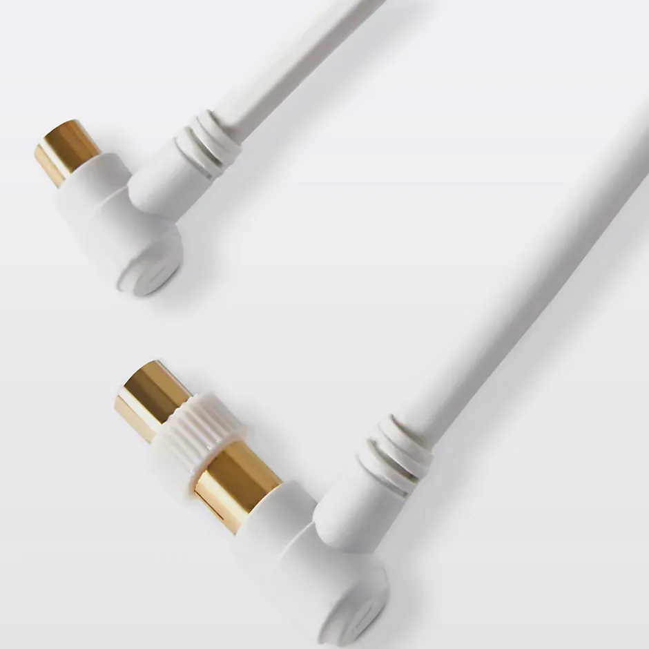 Câble coaxial Mâle / Femelle + adaptateur Mâle / Mâle coudé blanc Blyss Or, 1.5 m
