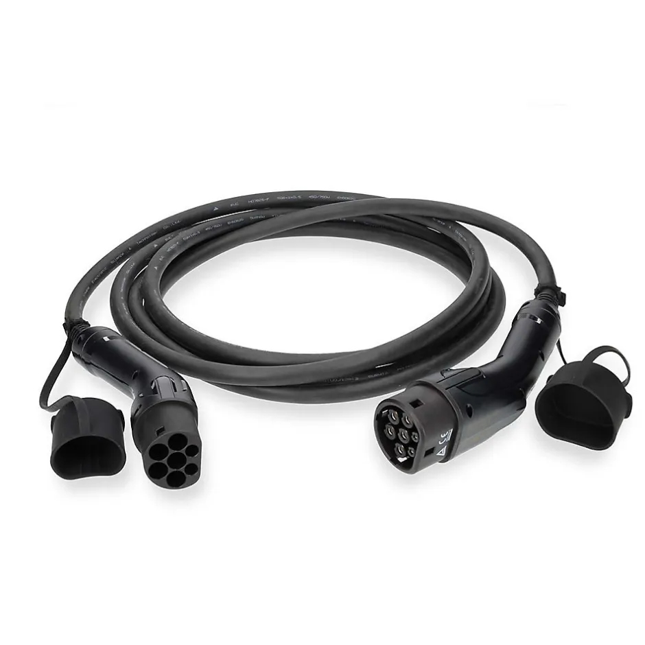 Câble de recharge voiture électrique 22KW type 2 16A – 5m noirProfitez d’une autonomie sans précédent grâce au câble de recharge EV de 5 m, qui vous permet de recharger votre voiture à la maison ou dans des stations publiques. Conçu pour être compatible avec différents modèles de véhicules électriques et hybrides, il est conforme aux normes de sécurité CE et TUV pour une expérience de charge sans souci.Ce câble de chargement est équipé de fils de cuivre à quatre conducteurs, qui supportent une charge maximale de 22 kW. Sa protection multicouche contre les chocs électriques garantit une recharge en toute sécurité. Chargez où vous voulez grâce à ce câble de charge livré avec une pochette de rangement portable fabriquée dans des matériaux durables et résistants aux chocs.Ce câble de charge est conçu et développé pour résister à tous les types d’environnements extrêmes. Le câble de charge de type 2 est étanche à l’eau et à la poussière selon la norme IP55 et peut supporter des températures allant de -30 °C à 55 °C. Qu’il s’agisse d’orages, de températures élevées ou de neige, vous pouvez recharger votre voiture en toute confiance et en toute sécurité, où que vous soyez.La charge de votre véhicule électrique de type 2 s’effectue sans effort grâce à nos connecteurs moulés durables, conçus pour une prise en main facile et pratique, garantissant une utilisation durable et fiable pour des expériences de charge de véhicule électrique fluides.