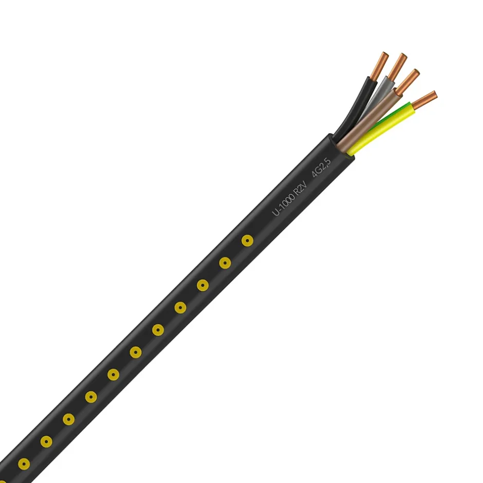 Le câble U-1000 R2V est la solution de référence pour vos installations électriques basse tension, alliant performance, sécurité et durabilité. Conçu pour l’alimentation et la distribution d’énergie, il convient parfaitement aux installations fixes en milieux résidentiels, tertiaires et industriels. Grâce à son isolation de haute qualité et à sa gaine robuste, le U-1000 R2V offre une excellente résistance mécanique et une protection fiable contre les agressions extérieures.
