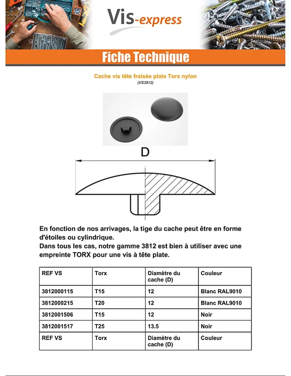 Cache vis Tête fraisée TORX TORX T20 Diamètre de tête: 12 Nylon RAL9010 blanc purFamille Sous Produits = Tete fraisee, Matiere = Nylon, Empreinte = Torx, Famille De Produits = Cache Vis, Dimensions Empreinte = T20, Diametre Tete = 12Autre références : 17605 103215 3663072065864