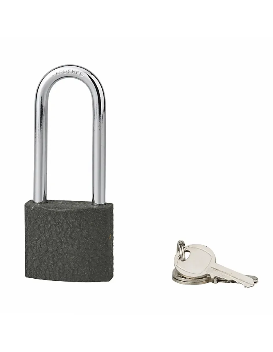 Corps monobloc. Anse acier. Mécanisme à goupilles. Simple ancrage. 2 clés acier nickelé.