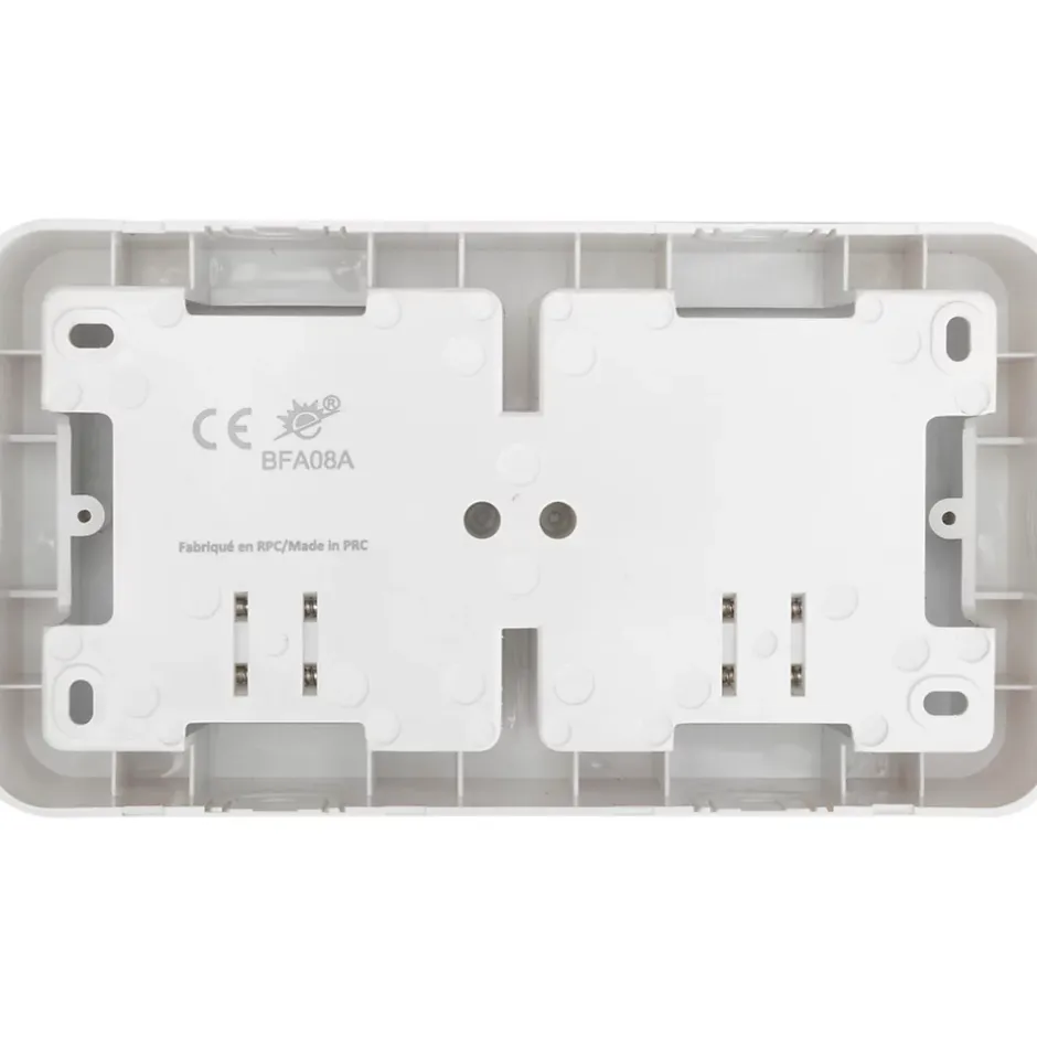 Boîte à combiner avec 2 produits maximum de la gamme modulaire Espen pour créer un équipement encastrable. Installation avec vis (incluses).