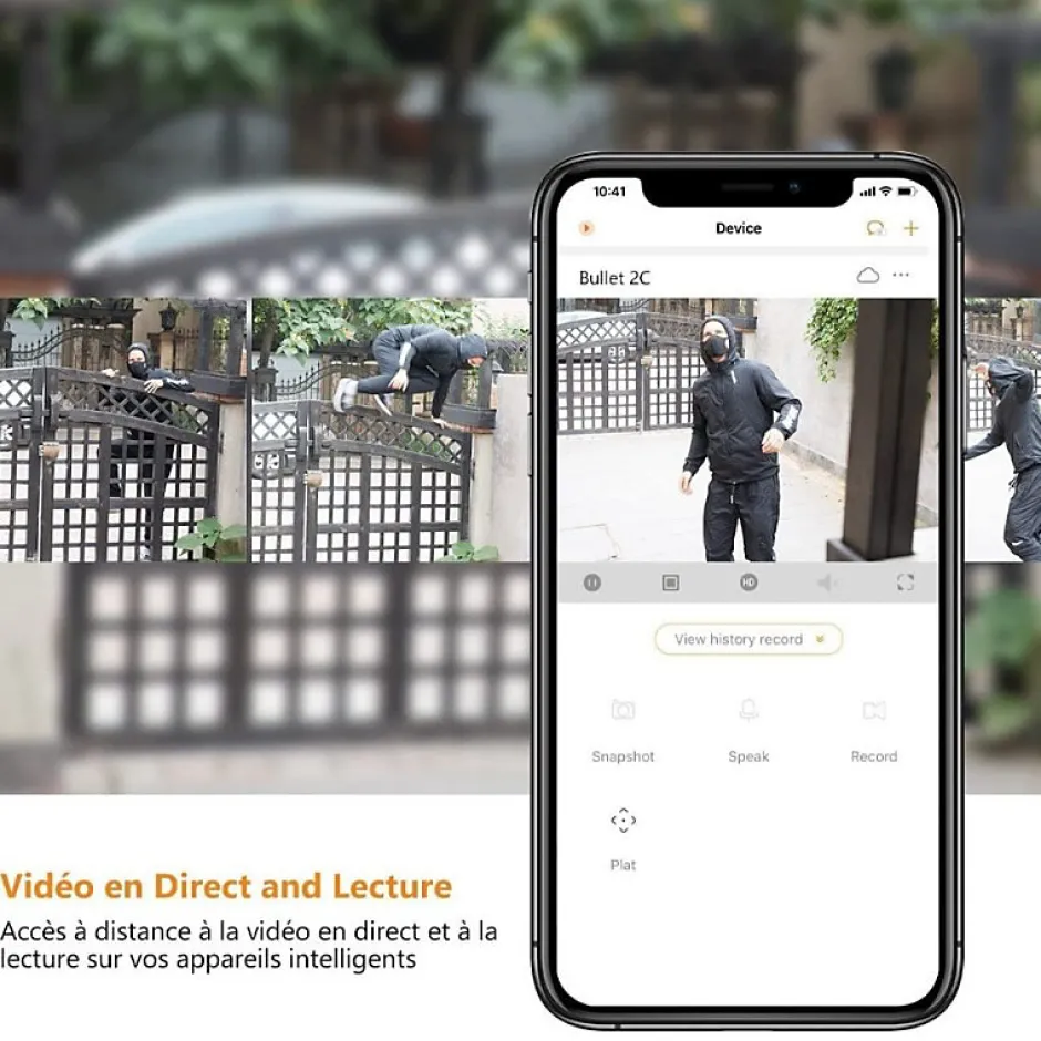 Bullet 2CSurveillance intelligente avec détection humaine par IADétection humaine | Vision nocturne | microphone intégré | IP67 résistant aux intempéries | Point d’accès Wi-Fi intégréAssurez une protection complète de votre maison Jour et nuit Pluie et soleilJour et nuitAvec une vision nocturne de 30 m (98ft), elle peut capturer chaque évènement important, même la nuit, afin que vous soyez toujours informé de ce qui se passe.Pluie et soleilCertifiée IP67, la coque protège l’appareil contre les conditions météorologiques extrêmes afin de garantir un fonctionnement continu toute l’année.Porte d’entrée et arrière-courSon design compact vous permet de l’installer n’importe où et de surveiller tous les recoins de votre propriété.Résistant aux intempériesCertifiée IP67, la coque protège l’appareil contre les conditions météorologiques extrêmes afin de garantir un fonctionnement continu toute l’annéePorte d’entrée et arrière-courSa conception compacte et élégante lui permet de trouver partout sa place. Elle s’installe facilement, que ce soit près de la porte d’entrée ou dans l’arrière cour. Elle couvrira chaque coin autour ou dans votre maison.Jour et nuitLa technologie de pointe utilisée par la vision nocturne permet à la caméra de sé
