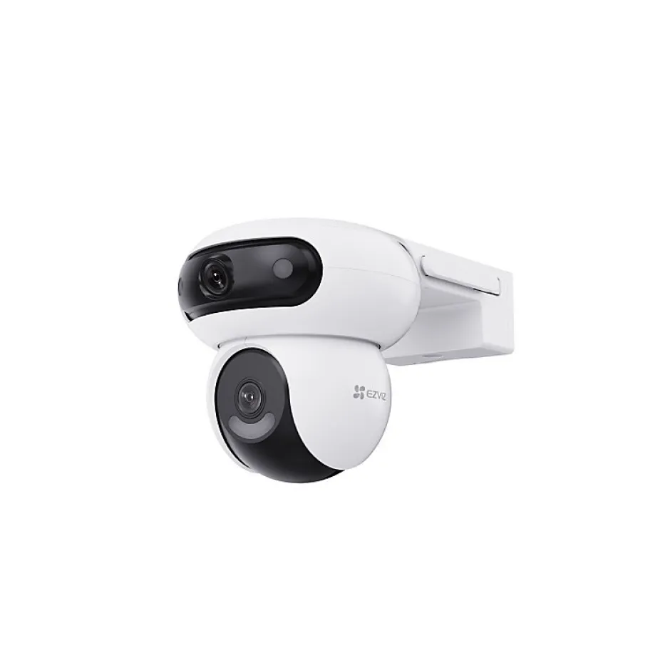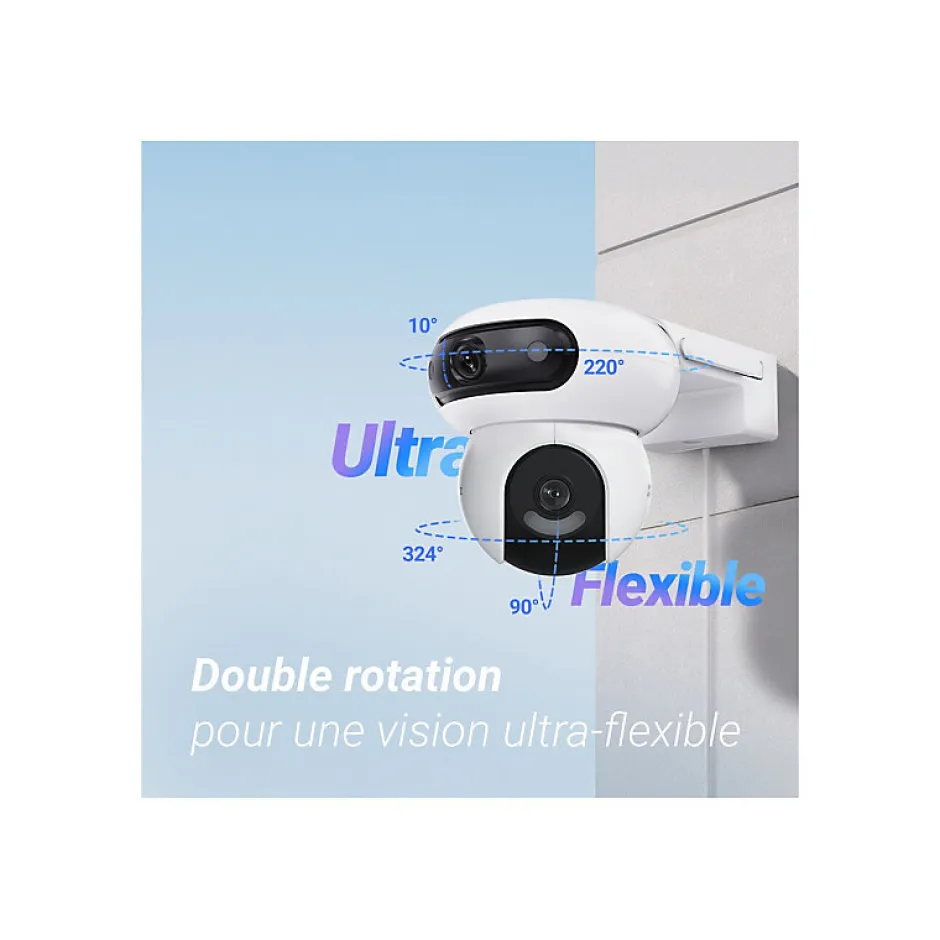 Surveillance Extérieure 360° avec Double Optique MotoriséeLa caméra EZVIZ H90 Dual 2K redéfinit la sécurité extérieure avec son système double optique motorisé. Équipée de deux caméras 4MP synchronisées et de trois moteurs, elle couvre simultanément des angles larges (110°) et rapprochés (52° horizontal) pour éliminer les angles morts. Son design pan-tilt permet une rotation de 324° en horizontal et 90° en vertical, assurant un balayage complet de votre propriété.Détection Intelligente et Suivi AutomatiqueGrâce à son IA avancée, la H90 identifie les mouvements humains et véhiculaires en temps réel, réduisant les fausses alertes. Le système de suivi automatique fait pivoter la lentille inférieure pour suivre les intrus, tandis que la lentille supérieure maintient une surveillance globale. Une sirène intégrée et des projecteurs activables à distance renforcent la dissuasion.Vision Nocturne Polyvalente jusqu’à 40 mètresProfitez d’une vision nocturne couleur grâce à 4 LEDS spotlights ou basculez en mode infrarouge noir et blanc (30 m). La technologie WDR numérique et le DNR 3D garantissent des images nettes même dans des conditions de faible éclairage ou de contre-jour marqué.Résistance aux Intempéries et Installation SimplifiéeCertifiée IP65, cette caméra WiFi résiste aux températures extrêmes (-30°C à +50°C) et aux intempéries. Son alimentation 12V DC et son application mobile intuitive permettent une installation rapide sans configuration complexe, idéale pour les espaces extérieurs exigus ou étendus.