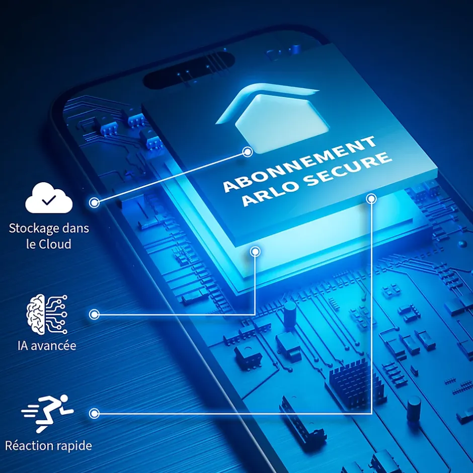 - Abonnement Arlo Secure (vendu séparément) Les abonnements Arlo Secure vous permettent de bénéficier d’un accès au stockage dans le cloud et de consulter l’historique de vos vidéos pendant 60 jours via l’application. Ne recevez que les notifications importantes et limitez les fausses alertes grâce aux zones d’activité et à la détection de personnes, d’animaux, de colis et de véhicules. De plus, chaque abonnement comprend une assurance contre le vol, ce qui signifie que nous remplacerons votre caméra GRATUITEMENT en cas de vol. Annulez à tout moment. Sans abonnement Secure, vous bénéficiez de la transmission en direct, d’alertes de mouvement de base et d’un système audio bidirectionnel.