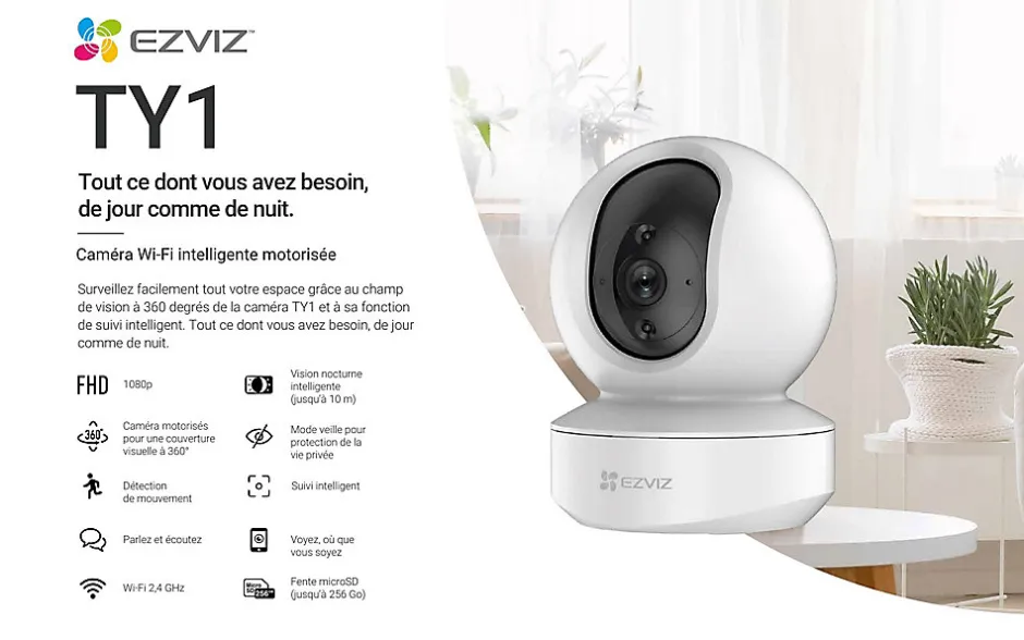 Caméra de vidéosurveillance rotative Ezviz TY1