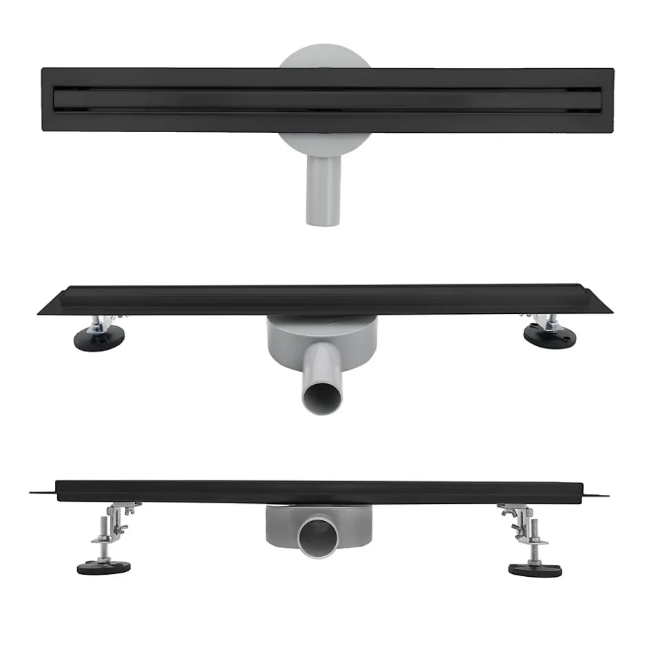 - Caniveau de douche compact encastrable en acier inoxydable noir
