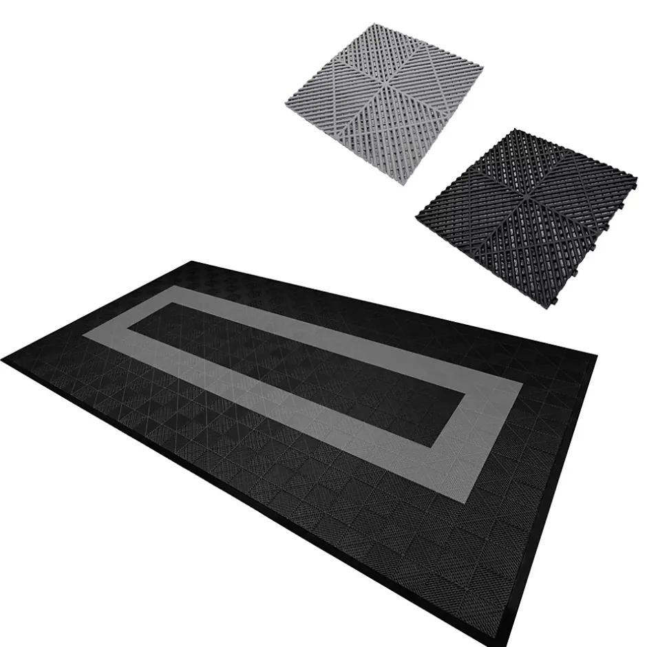 Transformez votre garage ou atelier avec notre carrelage de sol de garage ventilé haut de gamme, conçu pour offrir une durabilité inégalée, un style élégant et une praticité au quotidien.Cet ensemble de 120 carreaux (90 noir & 30 gris) imbriqués et 46 pièces de bordure constitue une solution complète de revêtement de sol, couvrant généreusement 19 m2 dans une configuration de 8 x 15 carreaux. Que vous soyez propriétaire, passionné d’automobiles ou professionnel, ce système de revêtement est conçu pour répondre aux exigences des environnements les plus occupés et les plus difficiles.Fabriqué en polypropylène 100 %, ce carrelage est remarquablement robuste, avec une capacité de charge impressionnante de 5 tonnes par carreau, capable de supporter sans effort les véhicules lourds, les machines et les équipements. Mais il ne s’agit pas seulement de solidité : ce carrelage est conçu pour durer. Le matériau résistant aux intempéries garantit une tenue face aux températures changeantes et aux conditions difficiles, vous offrant une tranquillité d’esprit, que vous travailliez sur des projets ou exposiez vos véhicules précieux.La surface