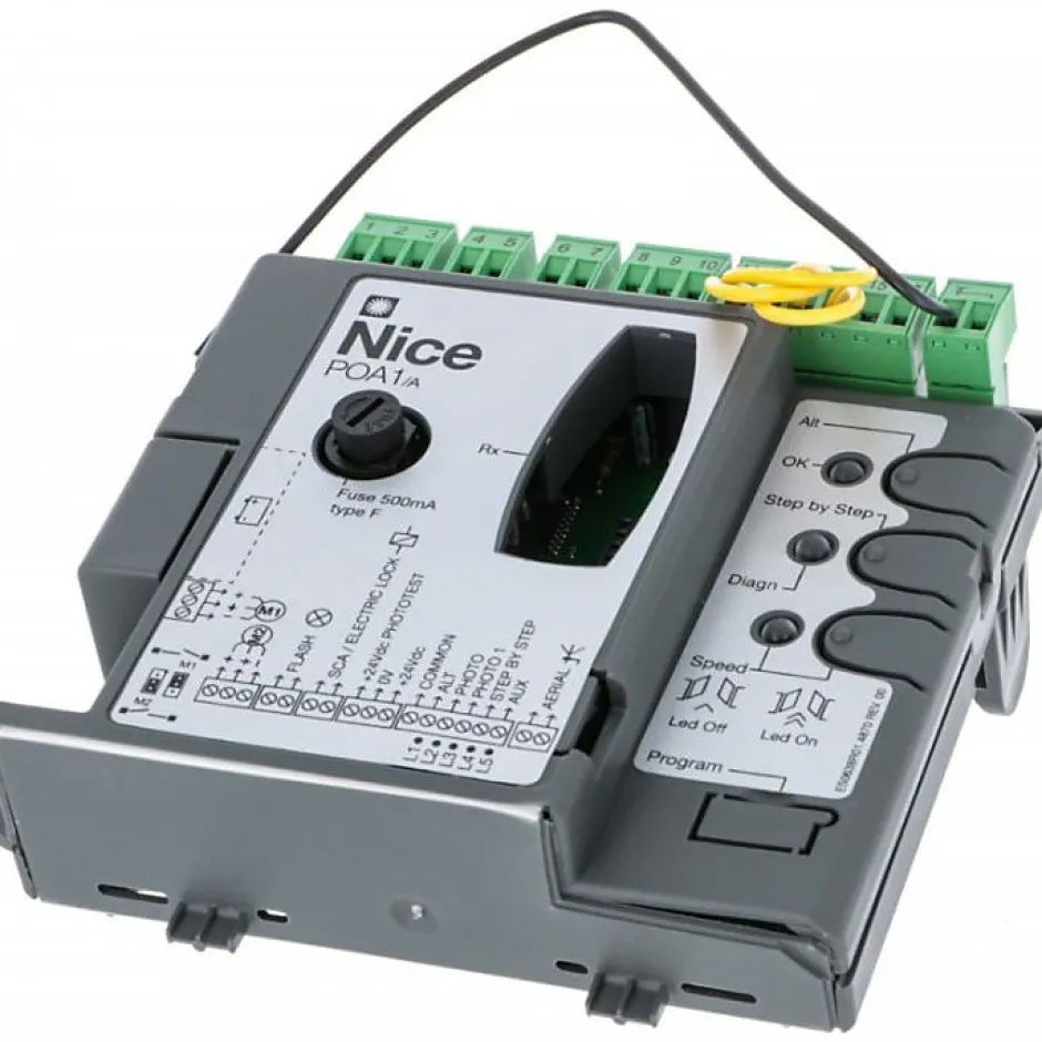 La Carte électronique NICE POA1/A est un élément électronique qui fonctionne avec les dispositifs NICE POP. La programmation de cette carte électronique se fait à l’aide de trois touches. Elle permet à votre porte / portail d’être ralentie au rythme que vous souhaitez. Fonction “Détection d’obstacles” et il est possible de la connecter à un système de barre palpeuse.