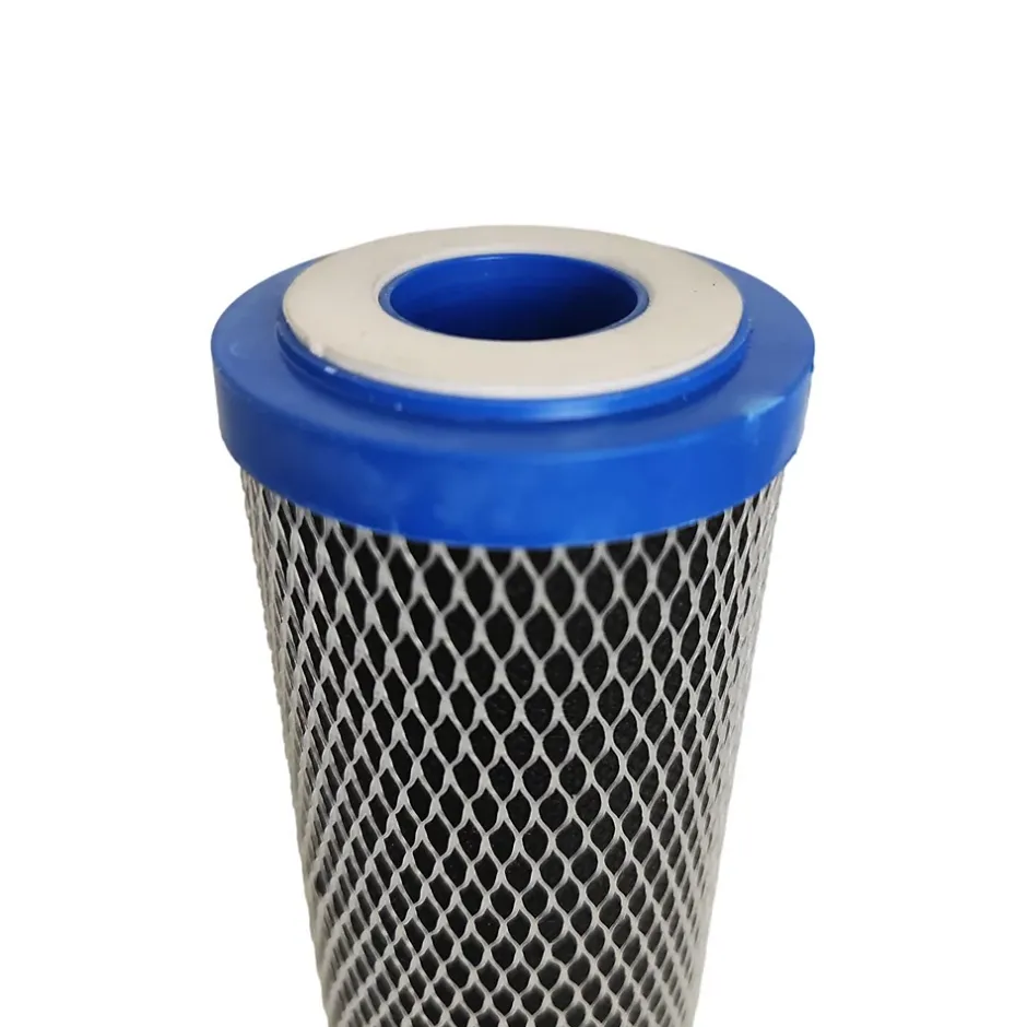 Cartouche double action filtre à sédiments et CA (5 microns) pour porte filtre 9″ 3/4 et osmoseurLa composition du charbon bloc de cette cartouche permet aussi d’éviter la prolifération des bactéries et donc de conserver les propriétés filtrantes de la cartouche plus longtemps qu’avec du granulat de charbon actif.Cette cartouche est indispensable pour filtrer une eau de ville ou de forage afin de garantir la distribution d’une eau saine, limpide et de haut qualité.Elle est notamment utilisée dans des applications de purification de l’eau ou pour un système de filtre sous-évier.Pour l’installation de cette cartouche vous pourrez vous équiper d’un porte filtre simple ou d’un double porte filtre transparent insert laiton 1″ ou 3/4″ compatible en taille standard 9″3/4 disponible sur notre boutique.