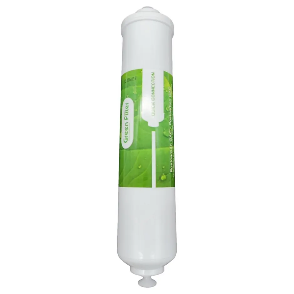 Cartouches au charbon de purification de l’eau CO0015 à raccords rapides pour Osmoseur et purificateur sous évier DuoLa cartouche de remplacement GAC finition pour Osmoseur ou Purificateur sous évier Duo est facile et rapide à installer, dotée de raccords rapides, le tuyau 1/4 » se clipse directement dans la cartouche.Une fois la cartouche installée, il suffit d’ouvrir le robinet pour profiter d’une eau filtrée instantanément.La cartouche Inline GAC filtre charbon, permet d’éliminer les mauvaises odeurs et mauvais goûts et de retirer les composés de chlore présents dans l’eau.