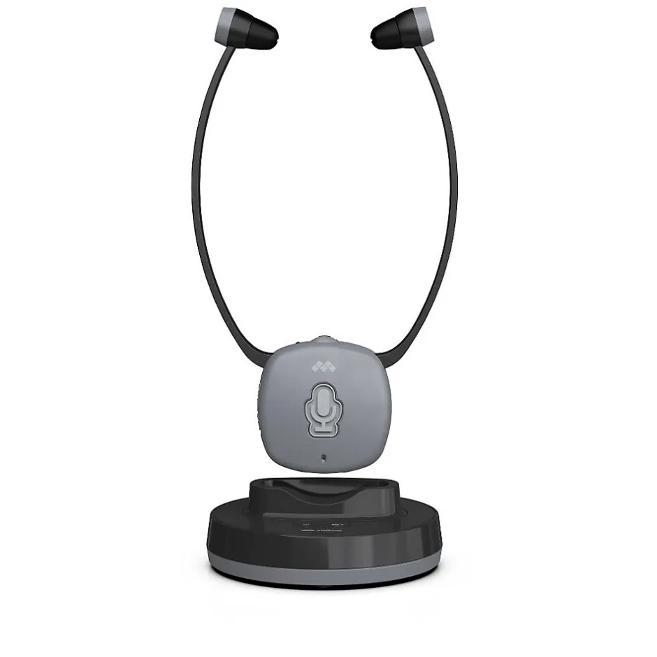 Casque TV sans fil avec transmission numérique du signal (2.4GHz) qui permet une liberté totale de mouvement (jusqu’à 20m du téléviseur). Excellente qualité sonore et stabilité optimale du signal. Rayon de réception jusqu’à 20 m maximum, en champ libre.Grâce à la base de rangement et de chargement, le casque est toujours prêt. Il est léger et confortable avec des embouts d’écouteurs en siliconeRetransmission audio stéréo sans interférence (en conditions optimales).Connexion rapide à un téléviseur, smartphone, décodeur, lecteur DVD, Blu-ray et autres sources audio analogiques et numériques.Station d’accueil pour ranger et recharger le casque après utilisation.Contrôle du volume et de la balance du son (sur le casque).Déconnexion automatique en l’absence de signal audio.Microphone interne : appuyer sur le bouton MIC permet de couper le son de l’entrée audio connectée et d’activer l’écoute amplifiée pour entendre les voix et les sons environnants. (idéal pour les seniors et malentendants)Une charge complète d’une durée de 3h permet une utilisation d’environ 15 heures